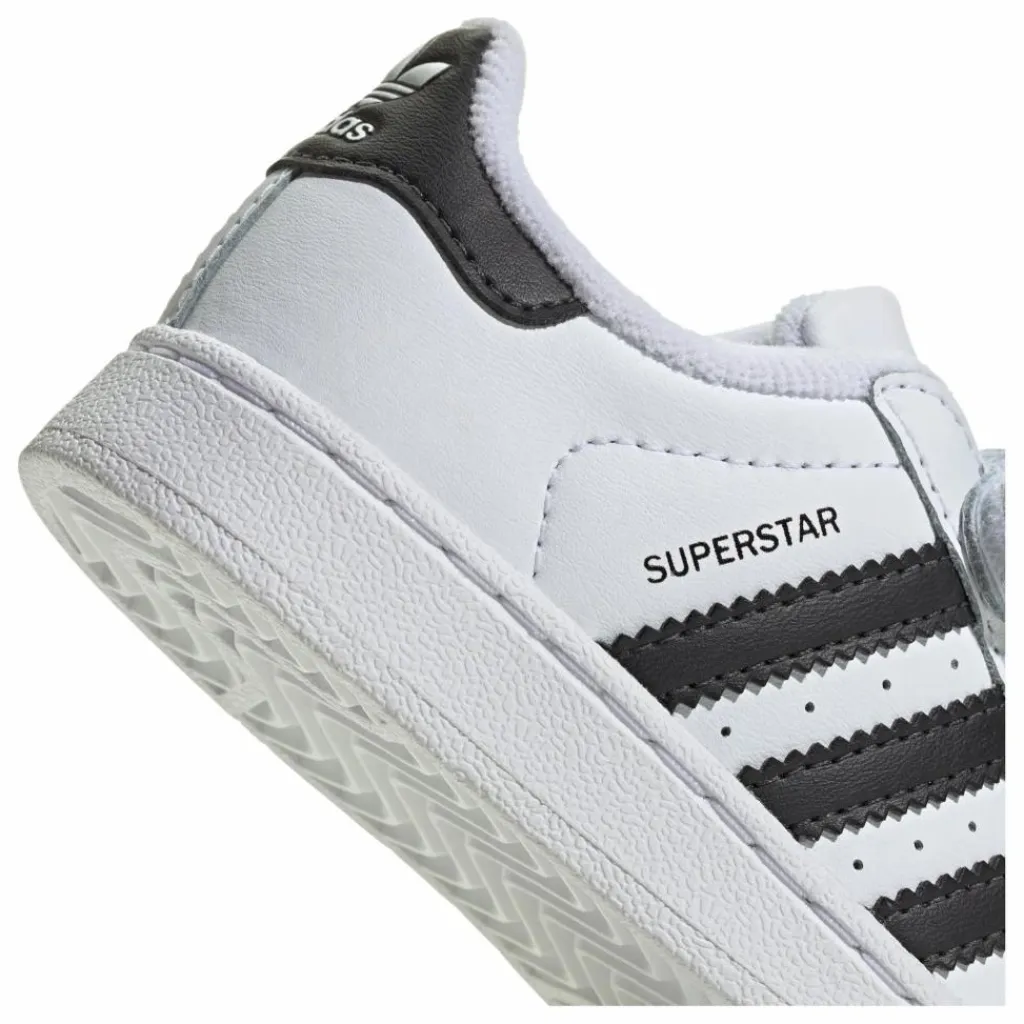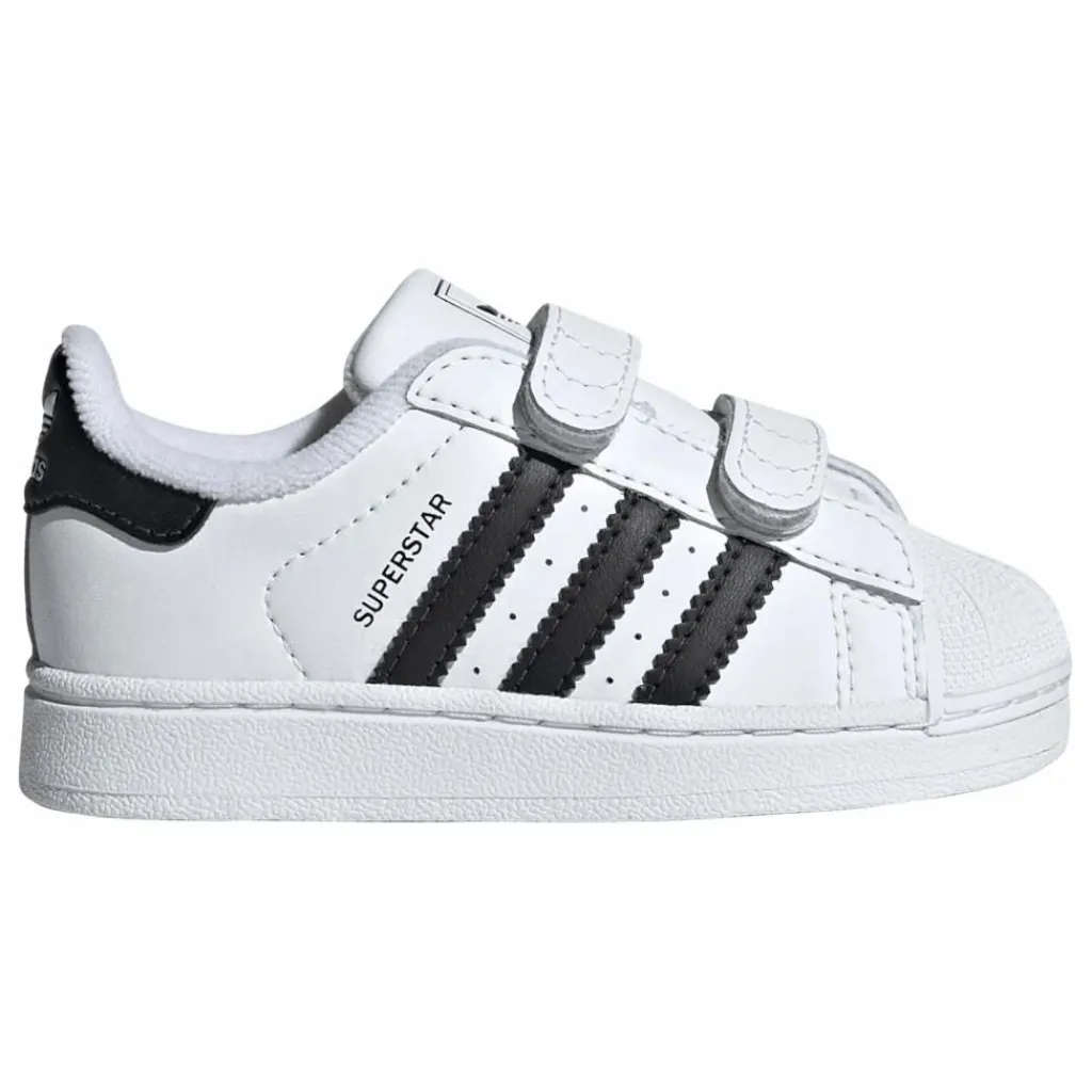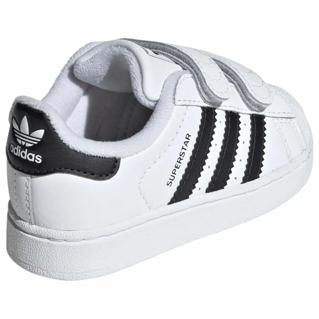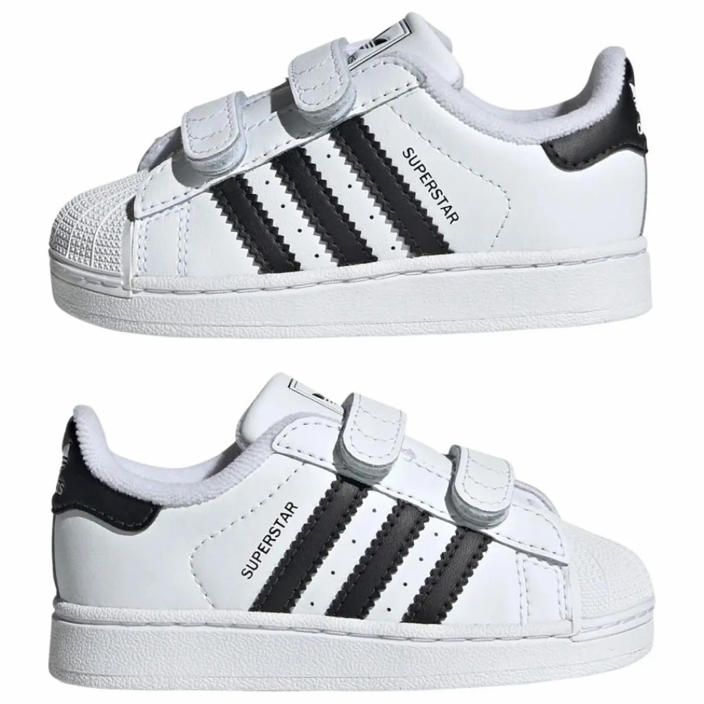 - Parfaite pour les plus jeunes trendsetters, cette chaussure adidas Superstar affiche un style iconique dans un design facile à enfiler. Les scratchs permettent de l’enfiler et de la retirer facilement. La tige en cuir souple, la languette matelassée et la semelle de propreté moulée offrent un maximum de confort aux tout-petits quand ils s’amusent et apprennent à marcher. Avec son shell-toe aussi célèbre que la sneaker elle-même, cette chaussure bébés ne passera pas inaperçue.