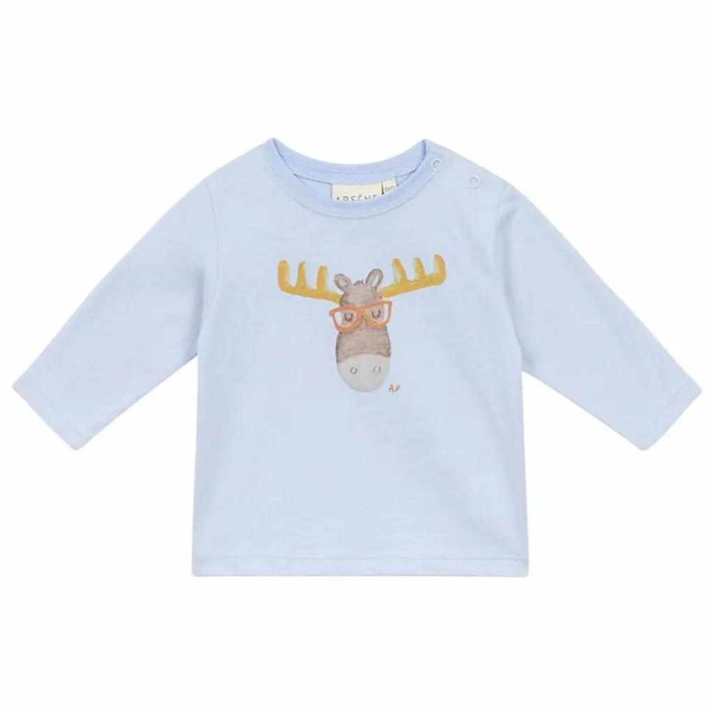 - Tee-shirt bebe . – Jersey en coton bio. – Manches longues. – Finition bord cote au col. – Ouverture pressionnee a l epaule. – Impression aquarelle « Caribou a lunettes » au devant. – etiquette petit drapeau cousue a la couture cote. – H25BT15