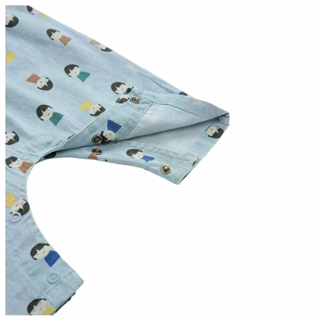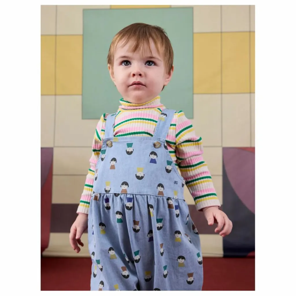 - Salopette en jean clair avec des pions de jeu sur toute la surface
