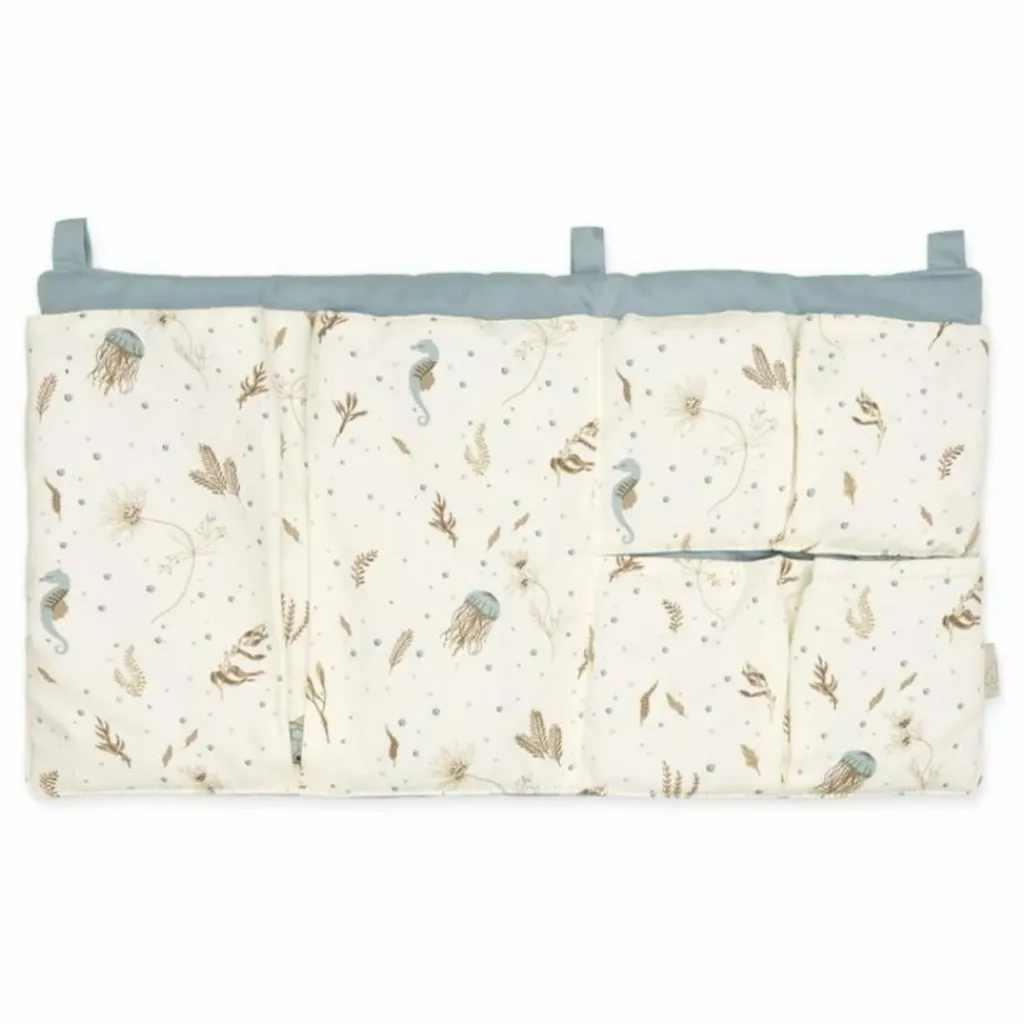- Pratique et jolie pochette de lit à fixer sur le berceau pour garder à portée de main tétines, livres, doudous et autres objets indispensables à l’endormissement. Pochette de lit en vert, marron et bleu.