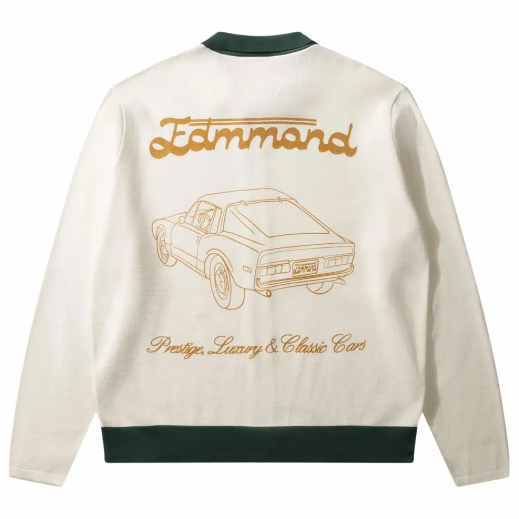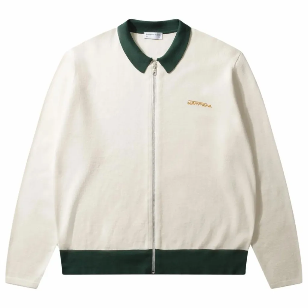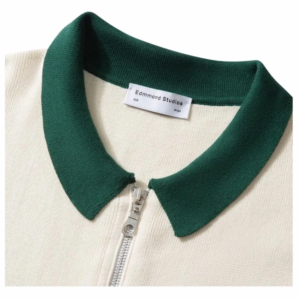 - Pull écru avec fermeture éclair sur le devant et encolure polo