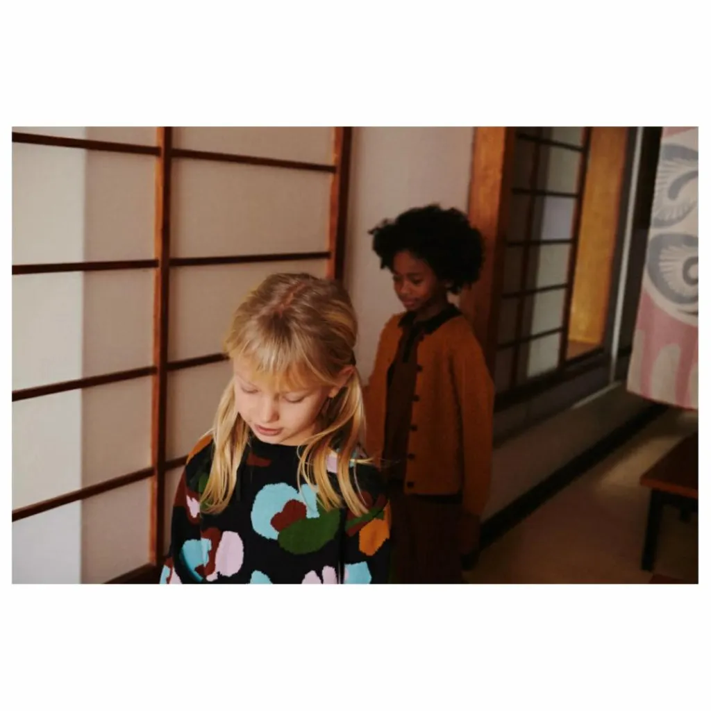 - Tricoté en pure laine mérinos, ce cardigan présente une encolure ronde, des ourlets côtelés et une coupe décontractée. Il se ferme sur le devant à l’aide de boutons en noix de corozo. Le corps et les manches sont tricotés dans un motif graphique d’Aran.