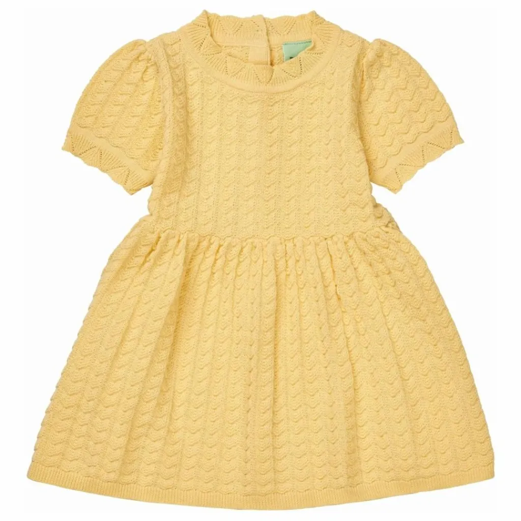 - Confectionnée en coton biologique, cette robe présente des manches courtes bouffantes, des détails de dentelle en pointelle à l’ourlet des manches et à l’encolure, ainsi qu’une fermeture pratique au dos avec des boutons en nacre perlée. La robe est tricotée dans un motif de pointelle ferme et présente des fronces douces à la taille pour créer du volume au bas de la jupe. 100% coton biologique certifié Le coton biologique est cultivé et récolté à partir de plantes non génétiquement modifiées, sans l’utilisation d’engrais chimiques et de pesticides.