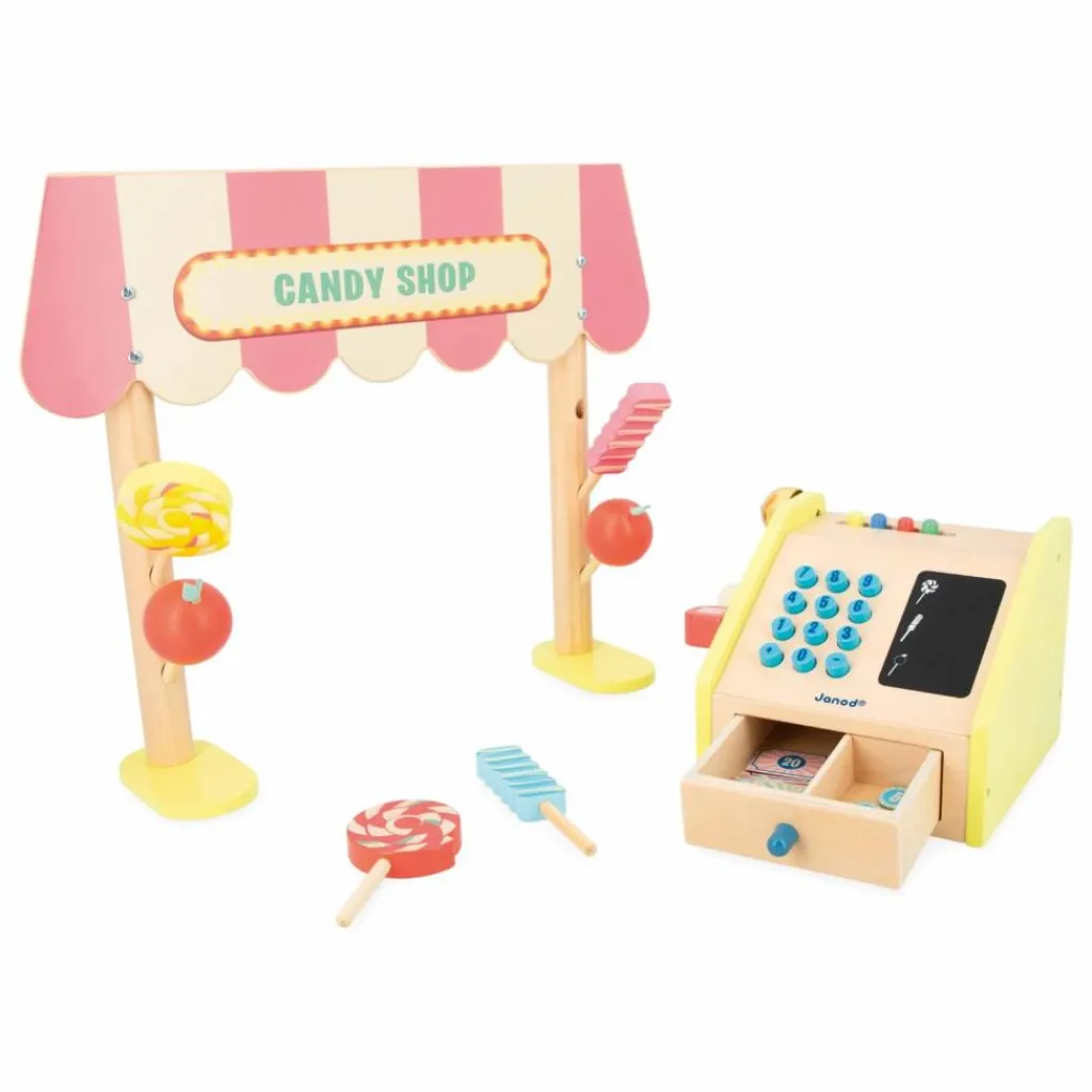 Bienvenue dans l’univers sucré de la fête foraine ! Les atouts de ce jeu de marchande sont nombreux : votre enfant va pouvoir imaginer plein d’histoires et faire comme à l’épicerie. Grâce à cette petite marchande, votre apprenti commerçant pourra s’imaginer vendant des bonbons à ses amis ou à sa famille. Il pourra aussi se projeter dans le rôle du petit vendeur à la fête foraine, stimulant ainsi son imagination.