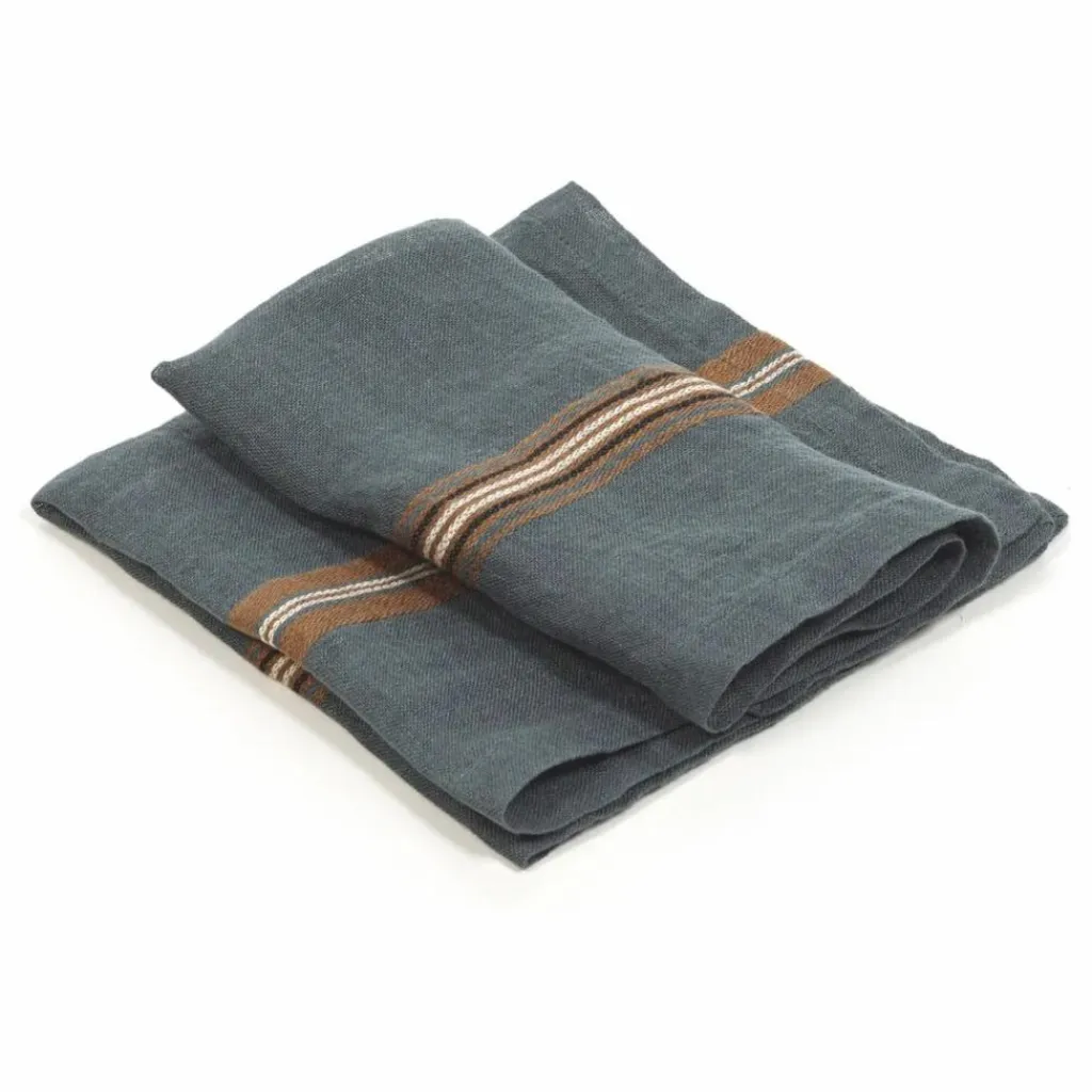 Kea, île des Cyclades, donne son nom à cette serviette de table au fond vert River, éclairci par deux rayures distinctes.