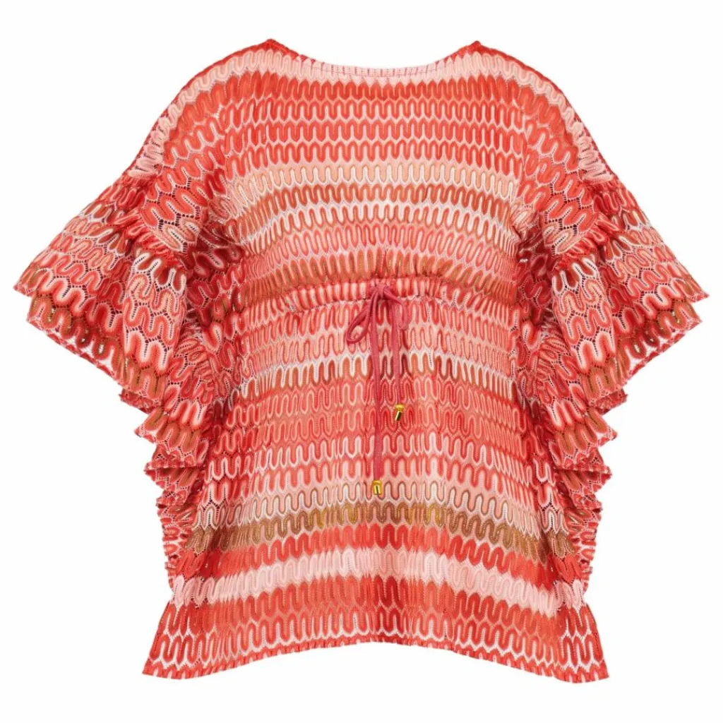 - Caftan léger et bohème, orné de volants délicats en crochet aux manches.