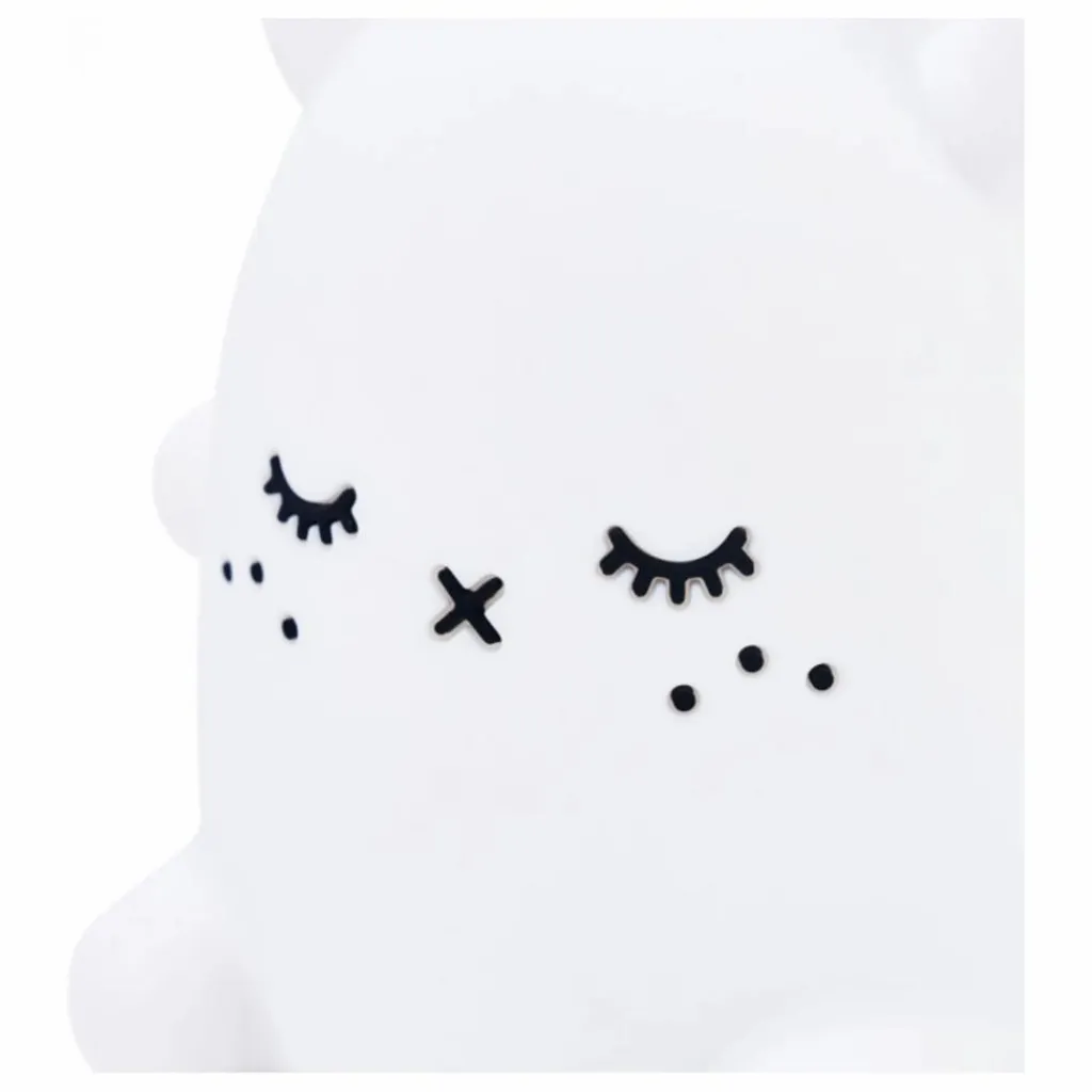 - Douce et moelleuse, cette petite veilleuse en forme de petit monstre blanc est facile à utiliser pour les petites mains. Fabriquée en silicone écologique, sans BPA, cette veilleuse rechargeable dispose d’une minuterie de 15 minutes et de la technologie tactile. Aucune pile n’est nécessaire. Une fois complètement chargée, elle peut rester allumée 24 heures, diffusant une douce lumière dans toute la pièce toute la nuit.