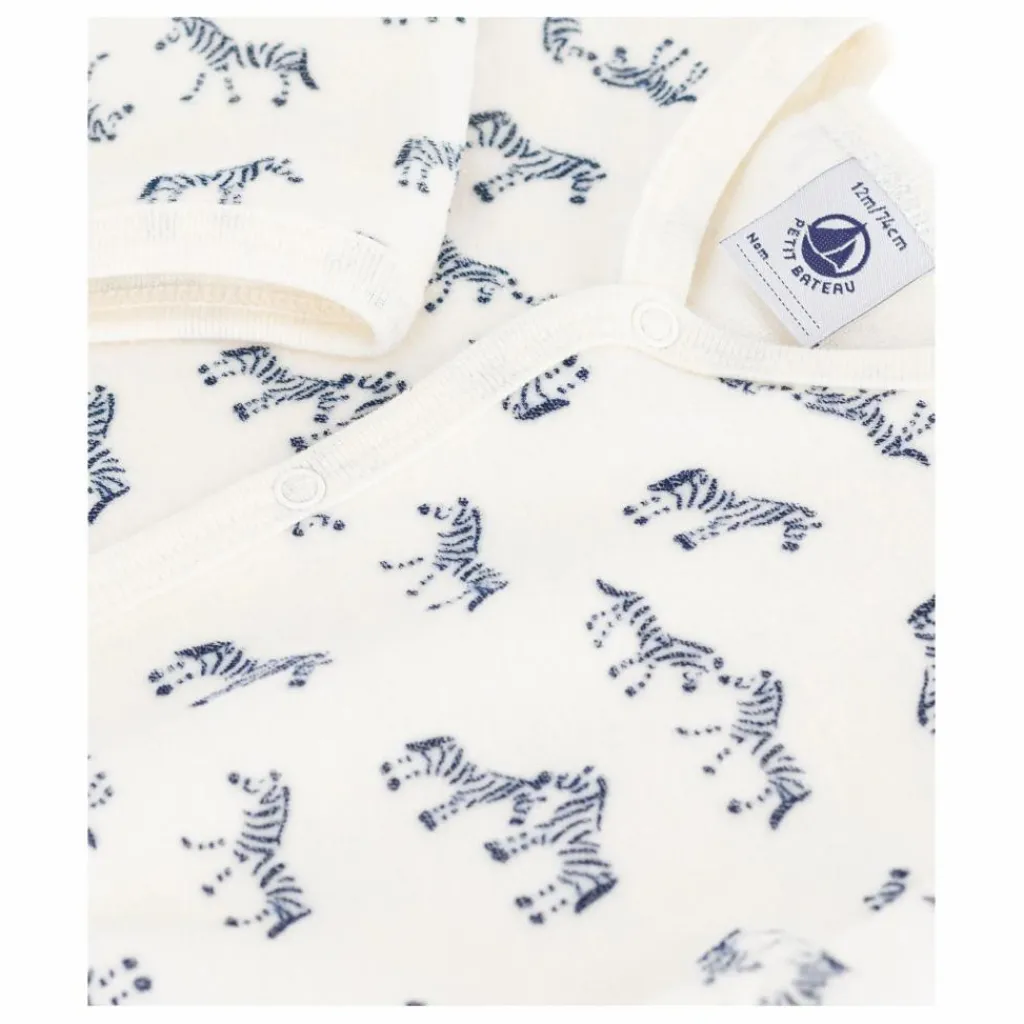 - Un imprimé animalier à la fois amusant et ludique, apportant une touche de fantaisie. La bouclette velours apporte confort et extensibilité.L’ouverture du pyjama se fait par boutons-pression sur le devant et à l’entrejambe.