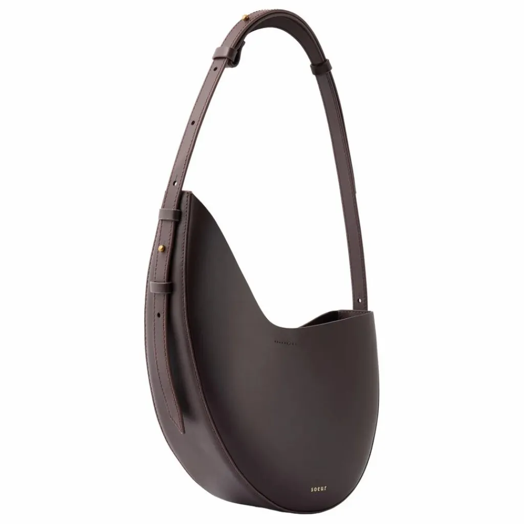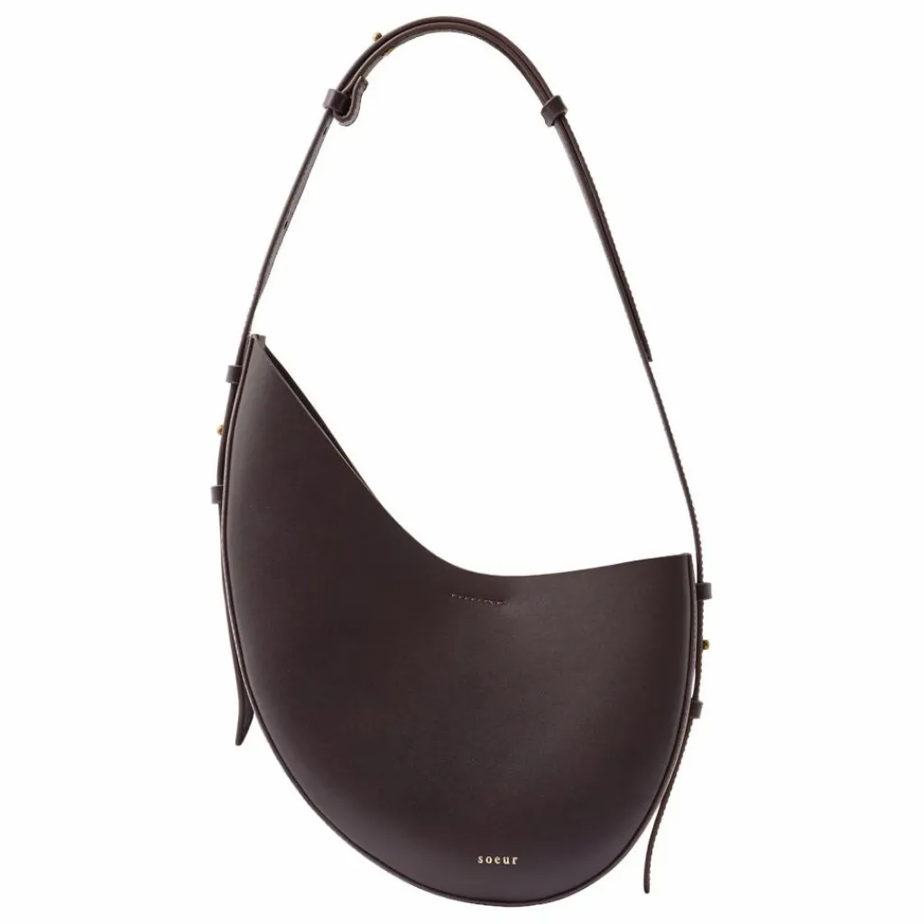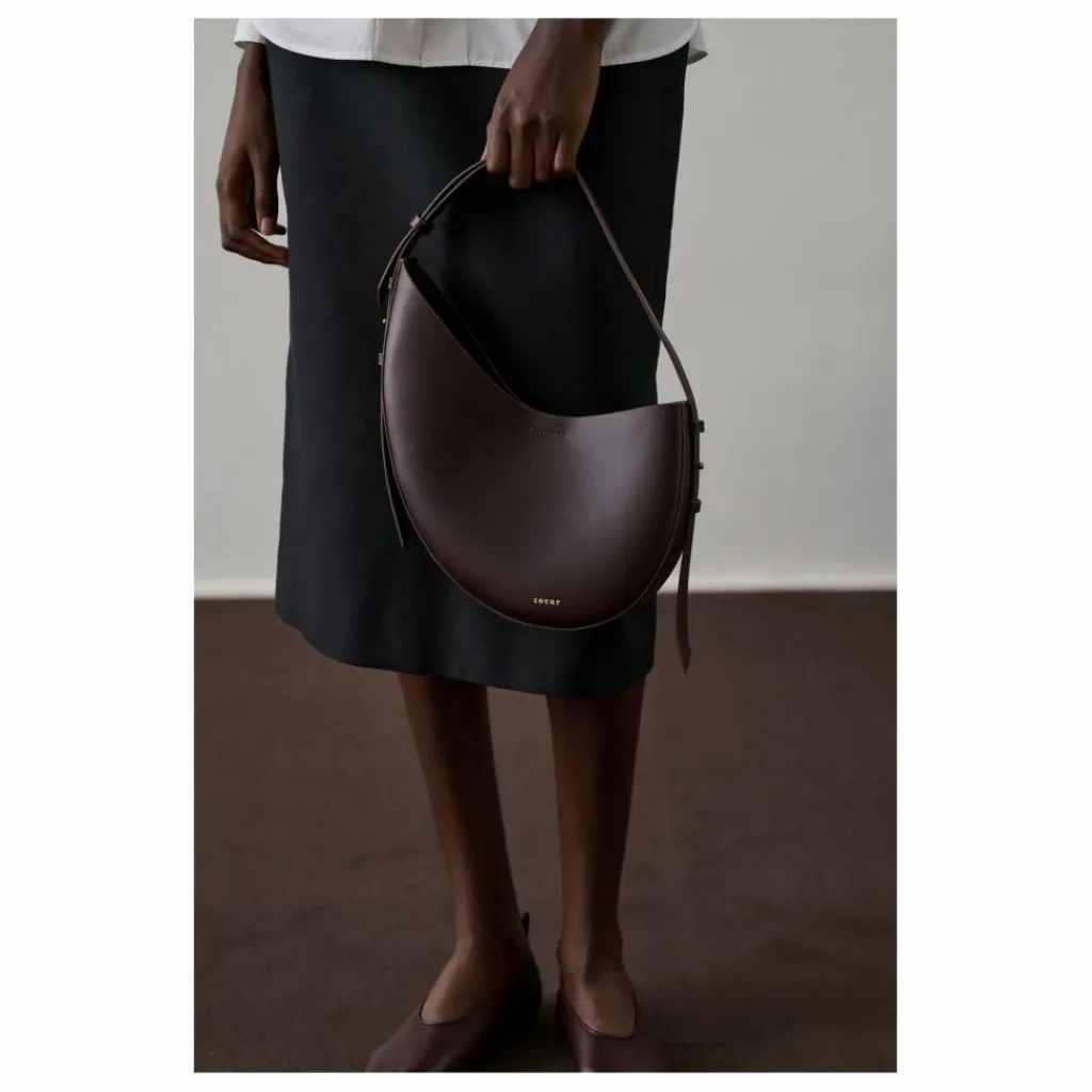 - Petit sac en cuir lisse bordeaux foncé, Petit sac en cuir lisse bordeaux foncé porté épaule