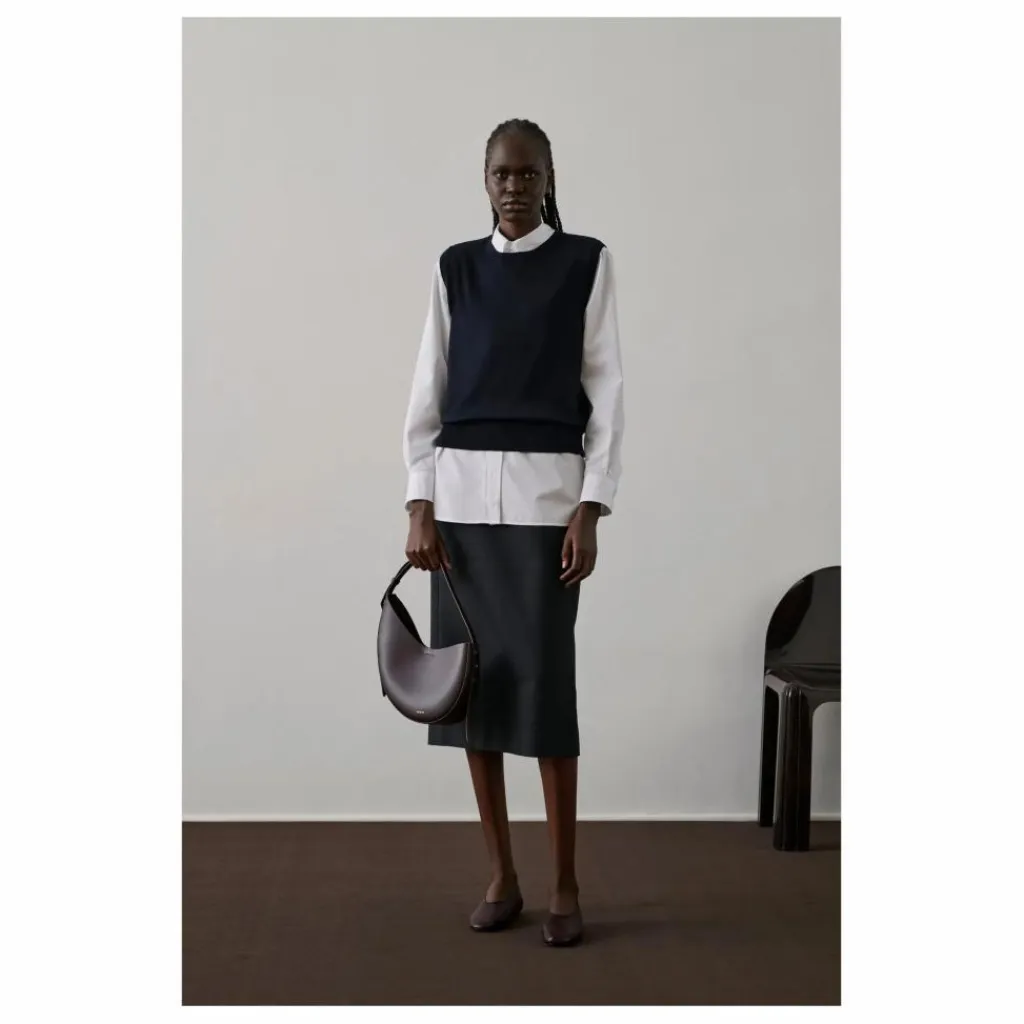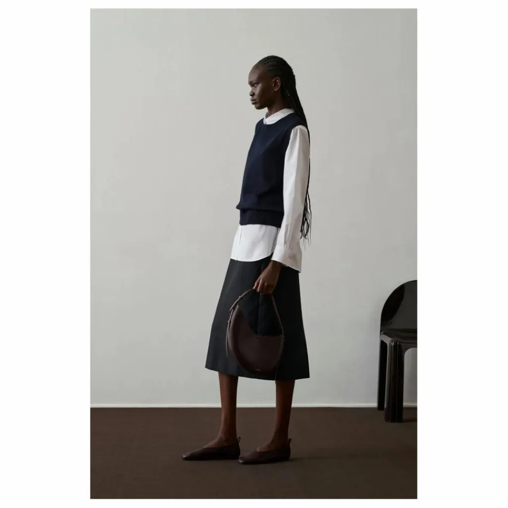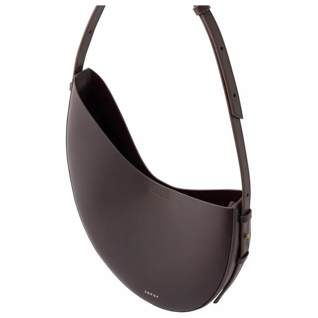 - Petit sac en cuir lisse bordeaux foncé, Petit sac en cuir lisse bordeaux foncé porté épaule