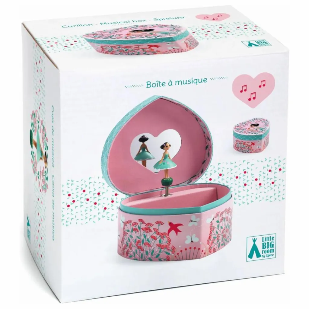 - Mélodie du printemps est une boîte à musique en forme de cœur joliment illustrée pour ranger ses bijoux et secrets. Tournez la manivelle, ouvrez la boîte, et surprise ! Une danseuse finement sculptée tourne et se reflète sur un miroir silhouetté au son de la musique « Invitation à la valse » de Carl Maria von Weber.
