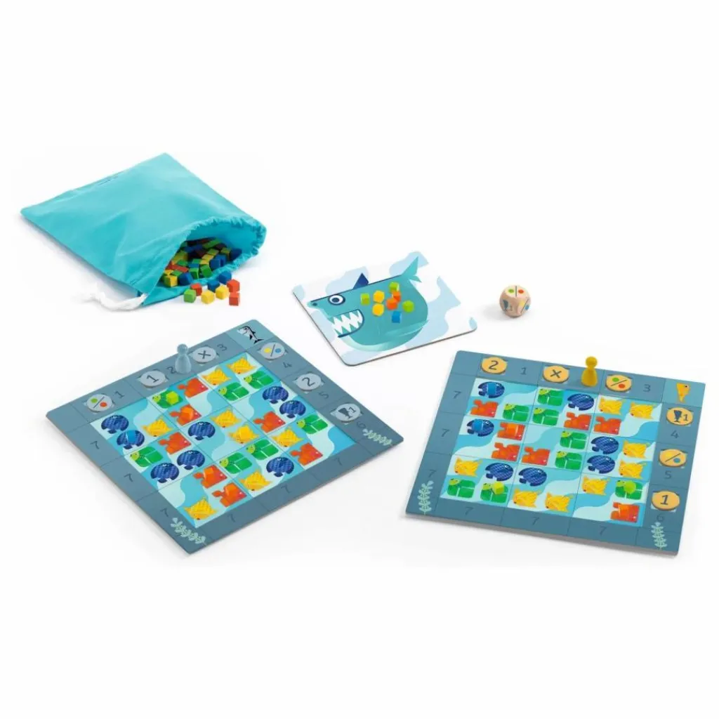 - Papa requin embarque ses petits dans une leçon de pêche. Qui sera le meilleur ?À chaque tour de jeu, les joueurs attrapent