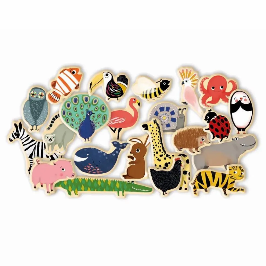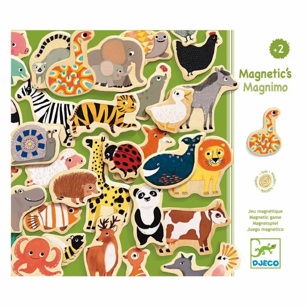 Magnimo est un imagier magnétique des animaux du monde. Votre enfant voyage avec ce coffret de 36 animaux magnétiques en bois.