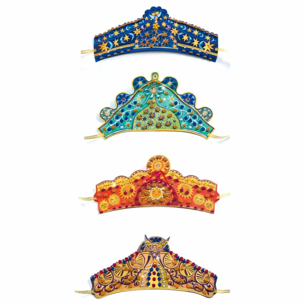 Ce kit créatif a 4 diadèmes à décorer. Votre enfant repère les numéros inscrits sur le diadème et colle au bon endroit les différents types de stickers. Une fois terminés, les diadèmes scintillent de mille feux et les enfants sont prêts à plonger dans le royaume enchanté !