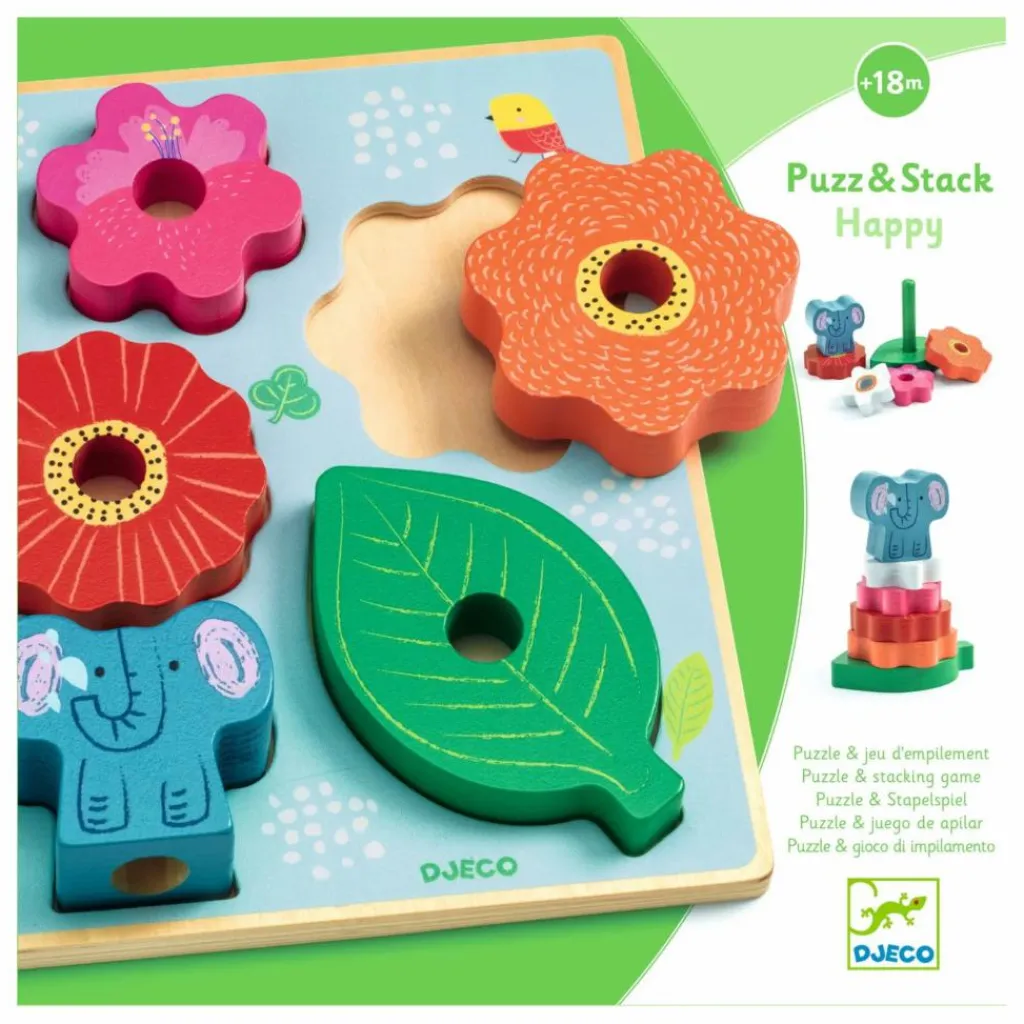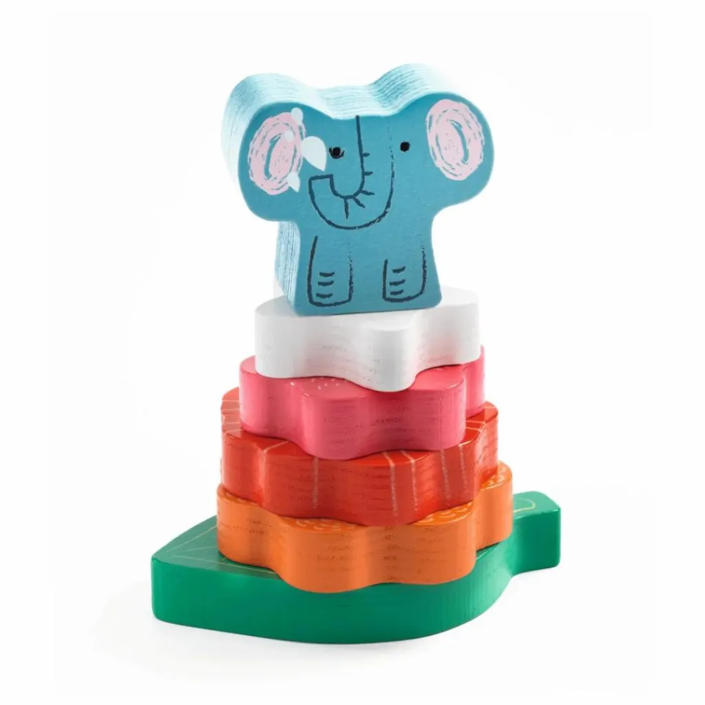 Puzz & Stack est un puzzle en bois facile à assembler et un jeu d’empilage. Les fleurs s’empilent sur l’axe en bois pour former une jolie pyramide de fleurs avec un petit éléphant sur le dessus.
