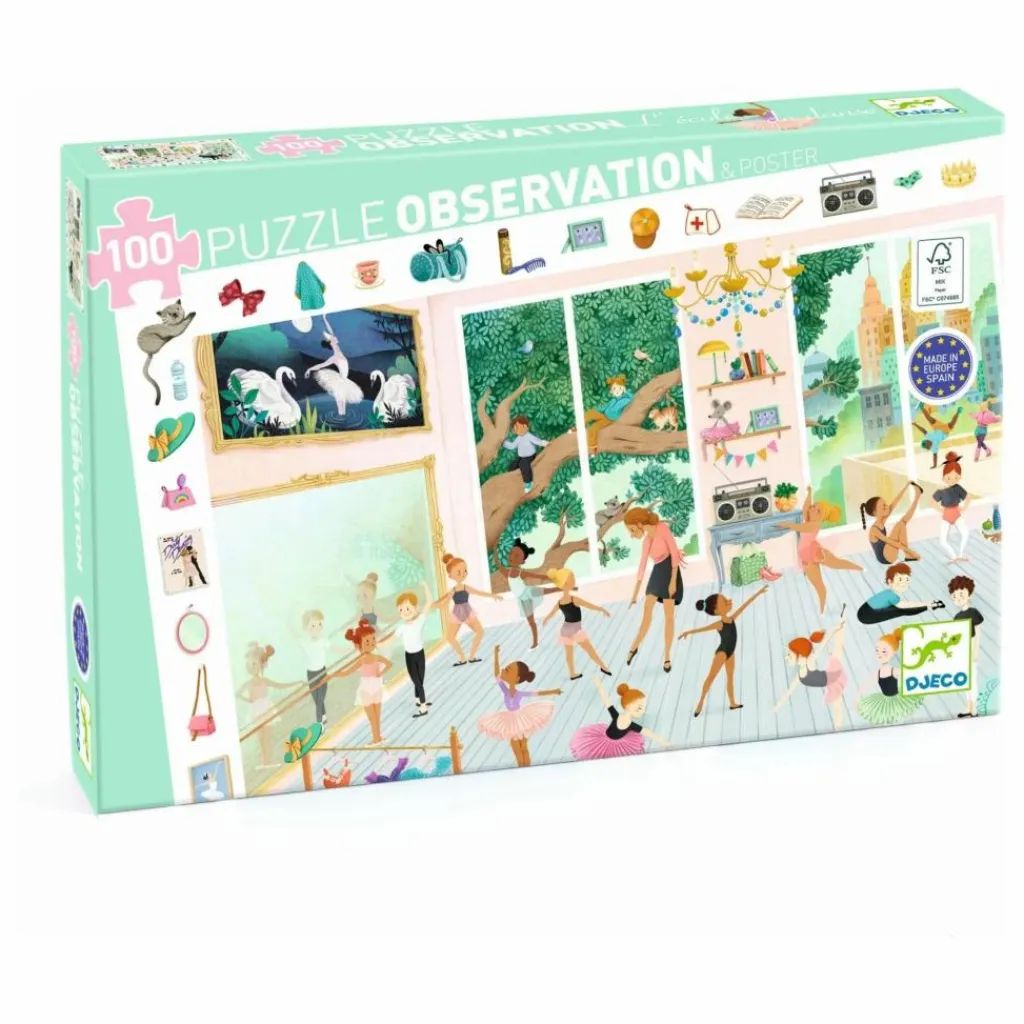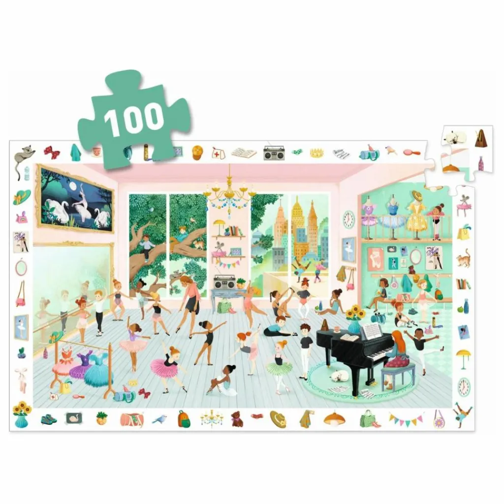 - Un puzzle observation de 100 pièces pour découvrir l’école de danse où les jeunes danseurs s’entraînent pour devenir les futures étoiles de l’opéra. L’enfant crée son puzzle puis s’amuse à retrouver dans l’image les éléments de la frise.