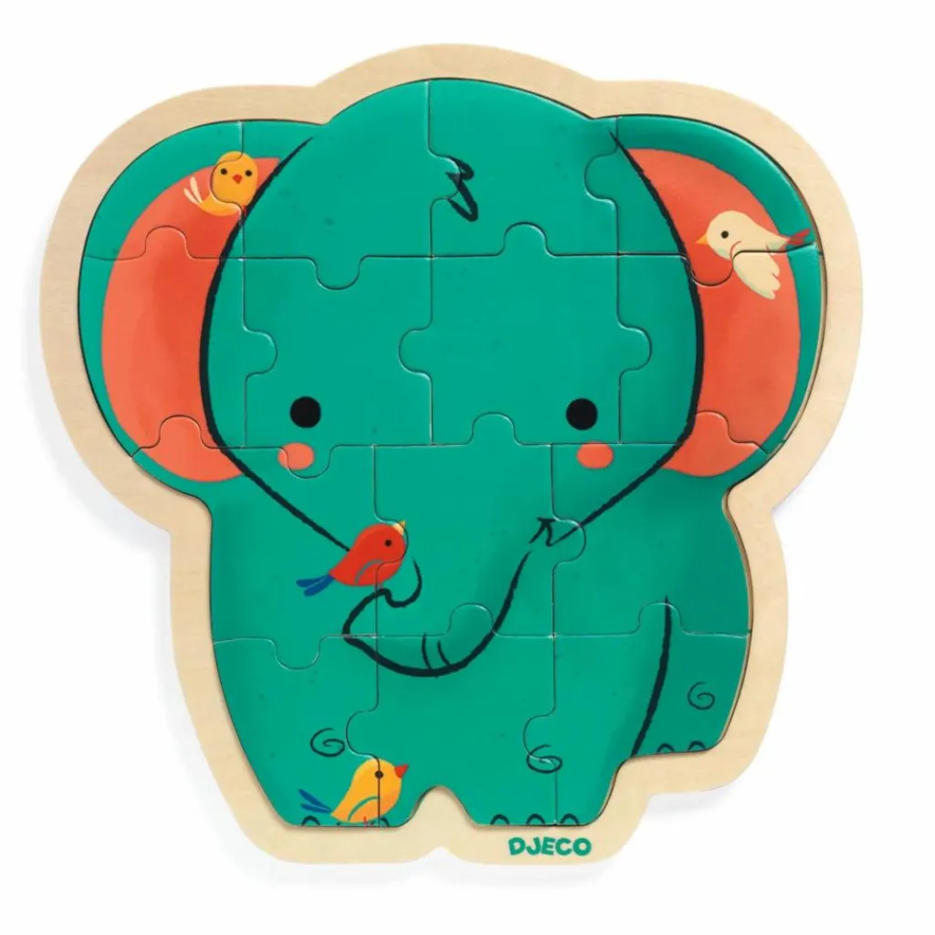 - Dans son cadre en bois qui suit la forme de l’animal, votre enfant reconstitue l’image pour y découvrir un joli petit éléphant. Le cadre en bois permet de bien caler les pièces à l’intérieur. Sur la base sont dessinées les pièces au trait pour aider vos enfants.
