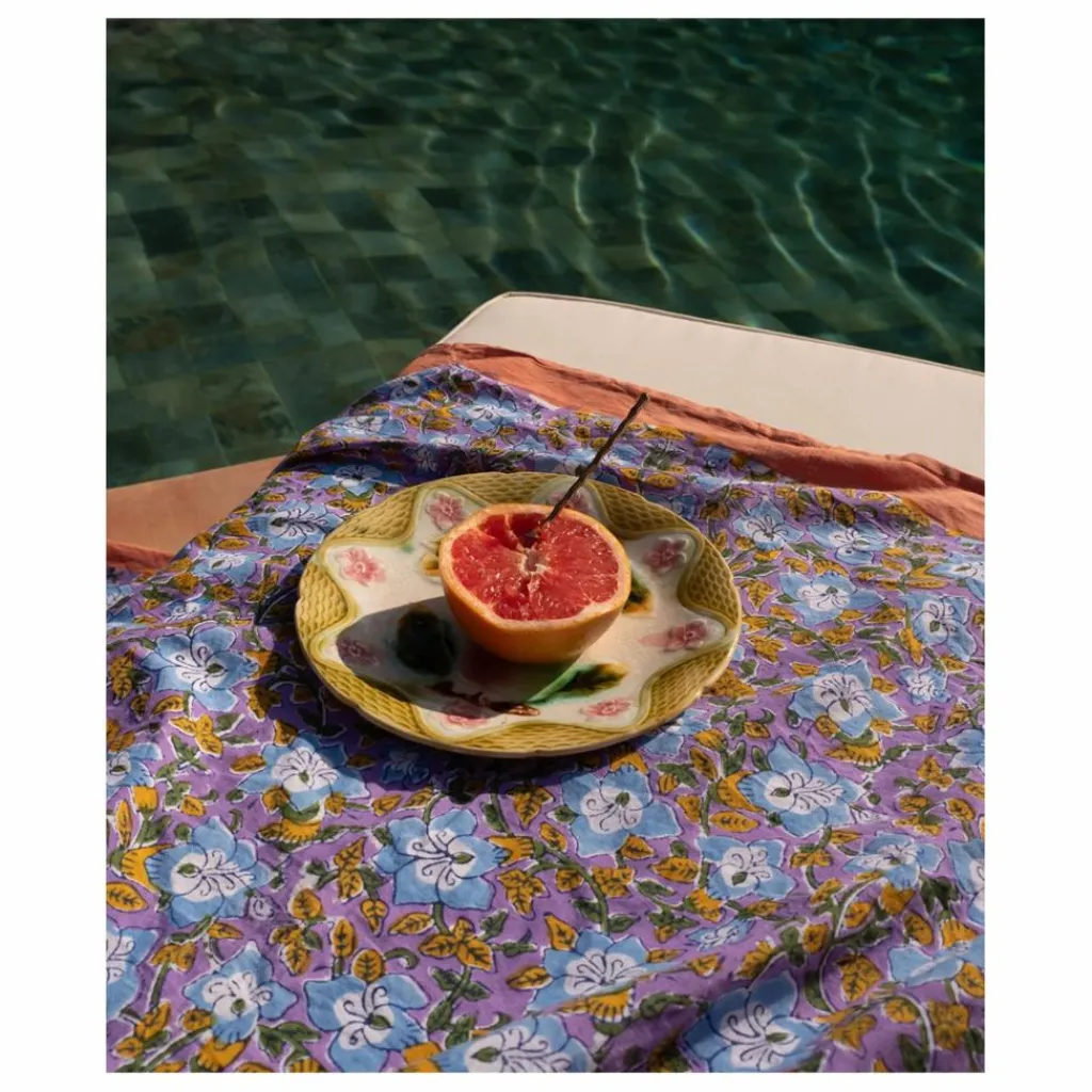 - Cette nappe, imprimée à la main, s’accompagne d’un joli sac fourre-tout assorti.