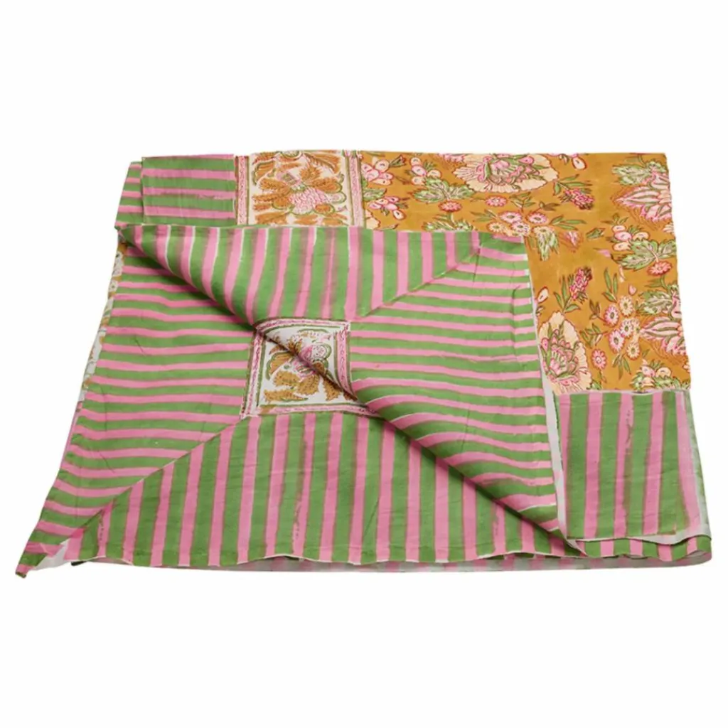 - Cette nappe, imprimée à la main, s’accompagne d’un joli sac fourre-tout assorti.