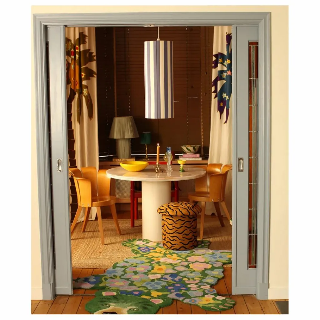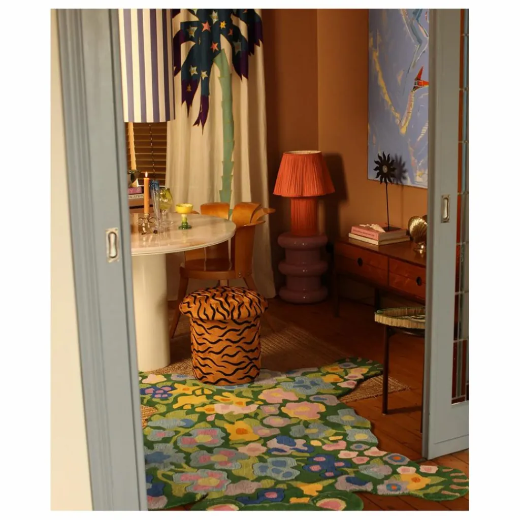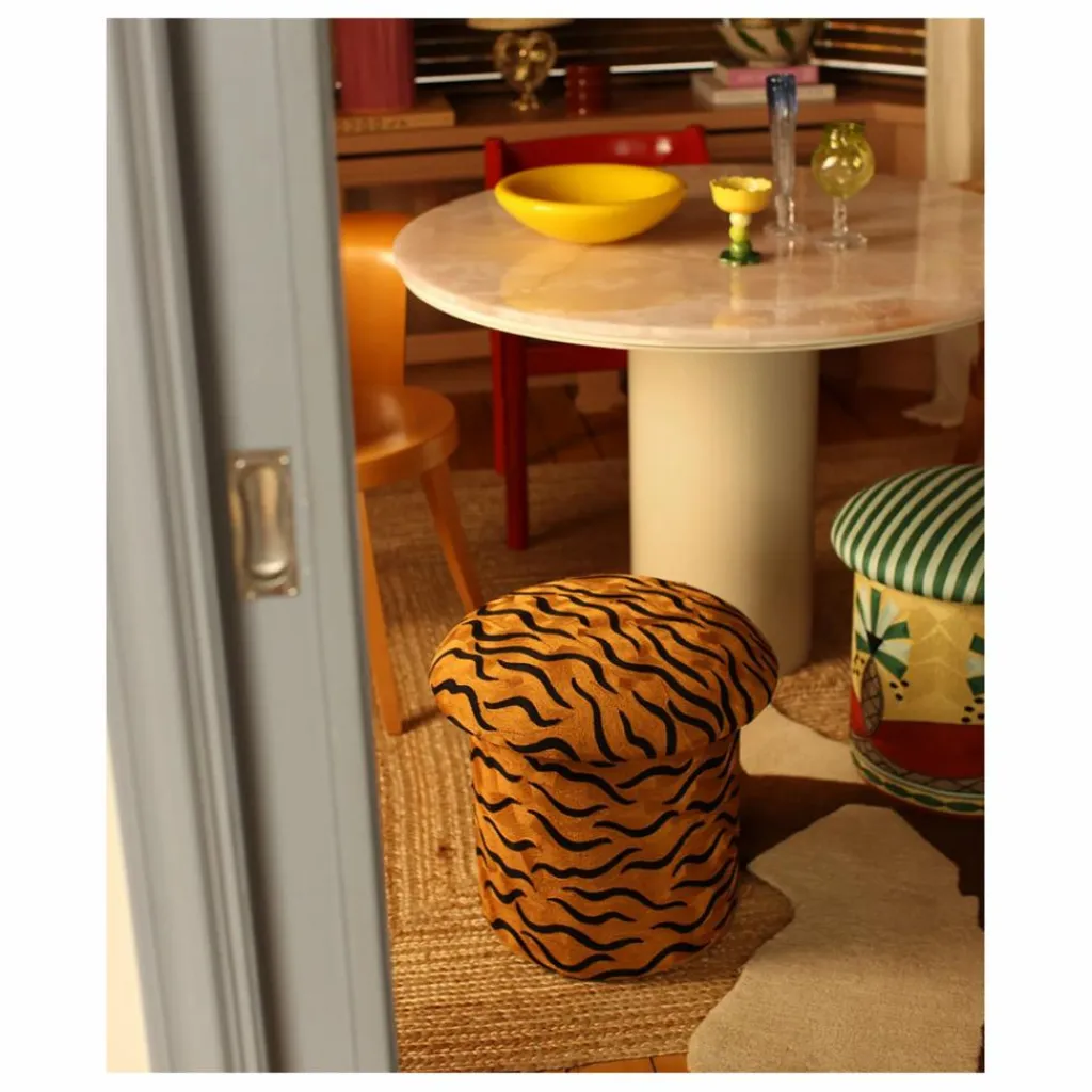 - Le tabouret brodé Maya Tiger est un objet qui fera sensation dans votre intérieur. Cette pièce étonnante, qui mesure 46 x 48 x 48 cm et pèse 4,4 kg, est méticuleusement fabriquée à la main par nos artisans qualifiés en Inde. Combinant laine et coton, le tabouret présente un motif de tigre saisissant, brodé pour ajouter une touche unique et artistique à votre décor. Parfait comme siège d’appoint, comme repose-pieds ou simplement comme élément décoratif, ce tabouret est à la fois fonctionnel et visuellement captivant.