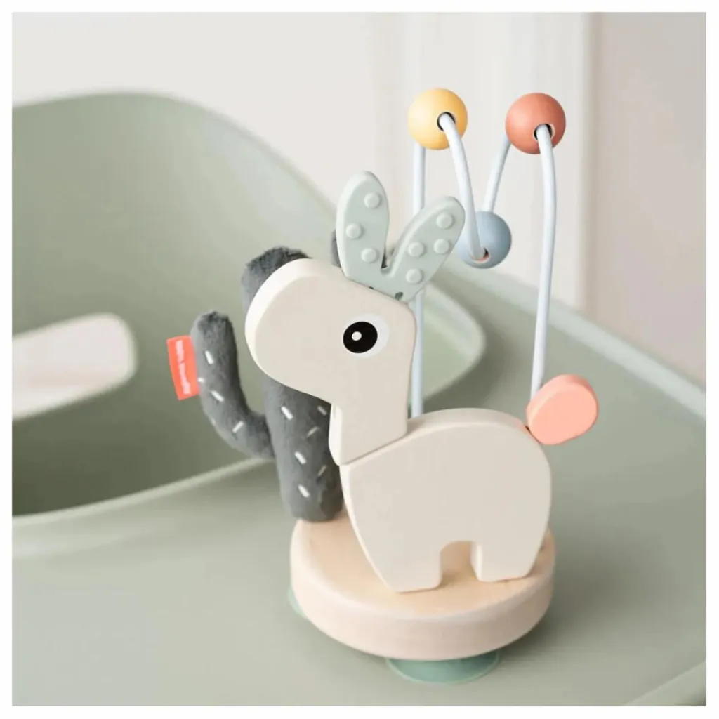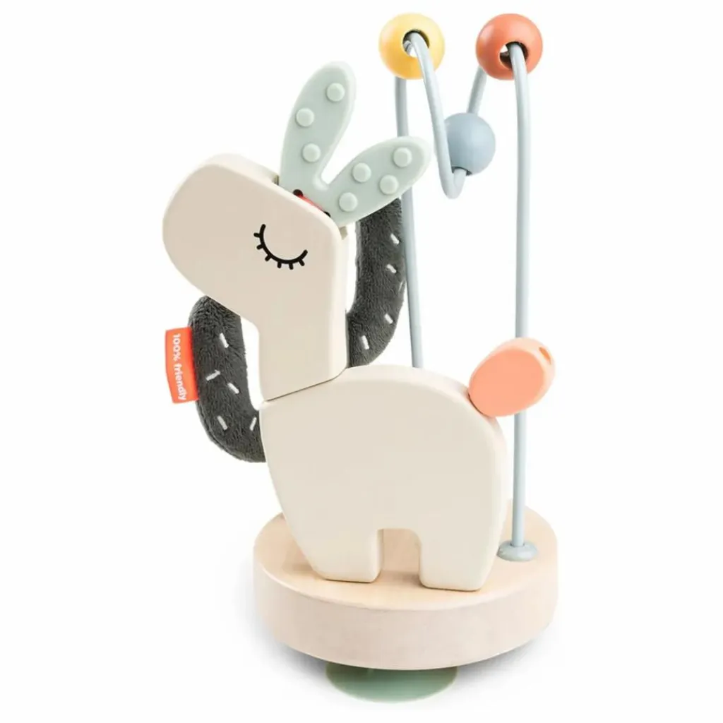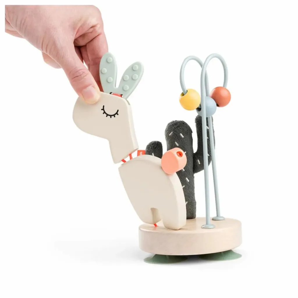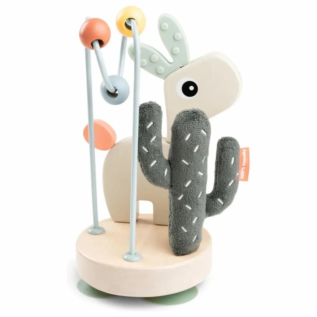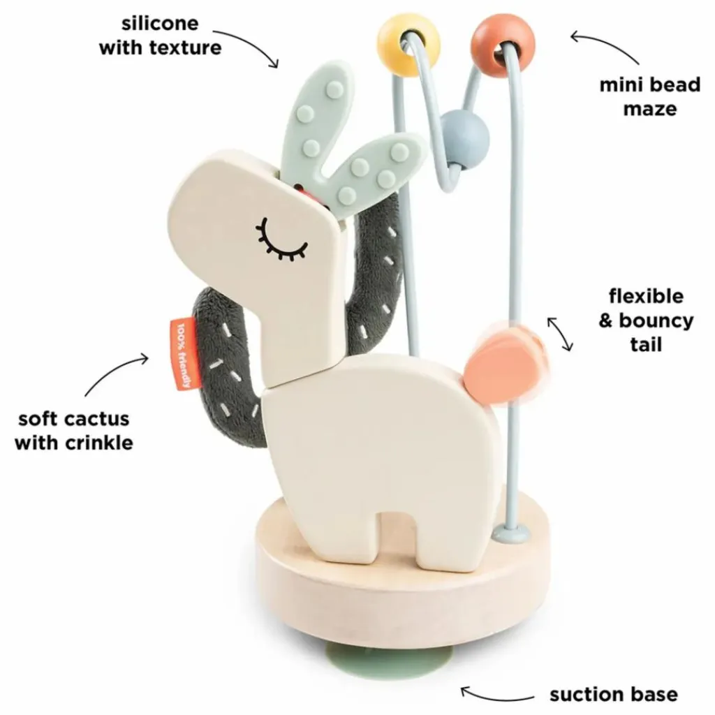 • Éléments stimulants comme un petit labyrinthe à perles, des sons attirants et des éléments flexibles