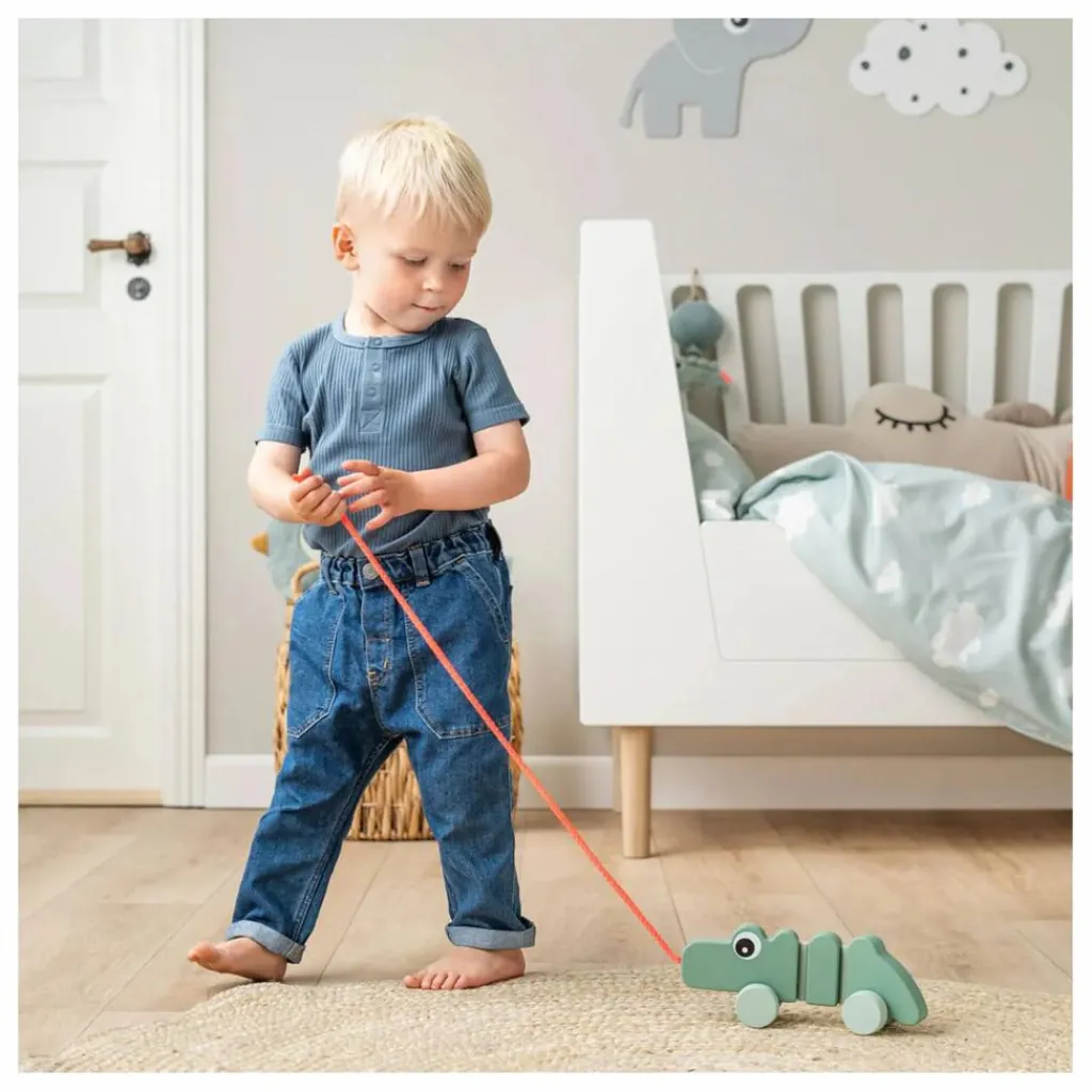 - • Jouet à tirer vert en forme de Croco