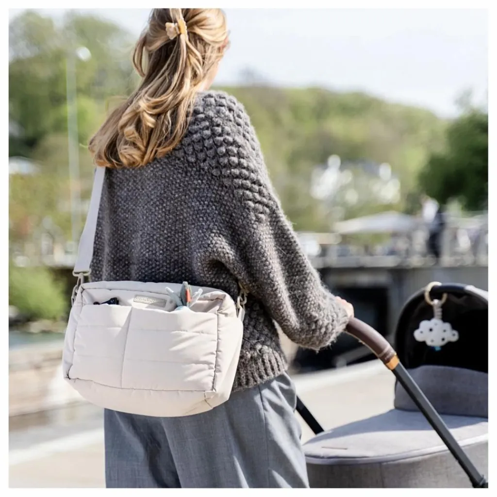 • Avec une sangle d’épaule flexible et des crochets d’attache pour la poussette