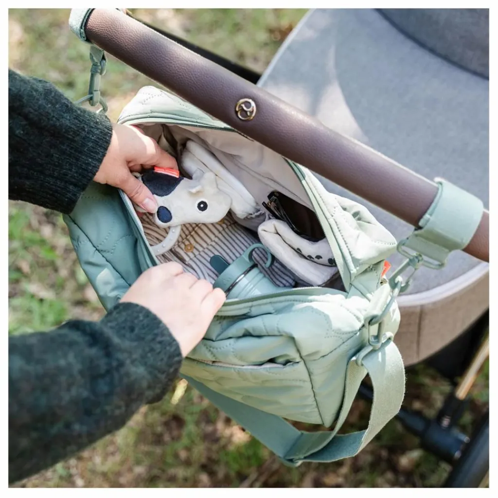 • Avec une sangle d’épaule flexible et des crochets d’attache pour la poussette