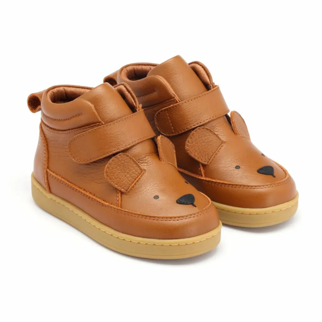 - Chaussures montantes, Empiècement cuir , Renfort à l’arrière de la chaussure, Finition surpiquée, Languette au talon, Oreilles d’animaux intégrées, Bouts arrondis, Ajustable