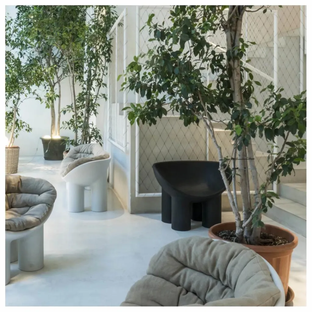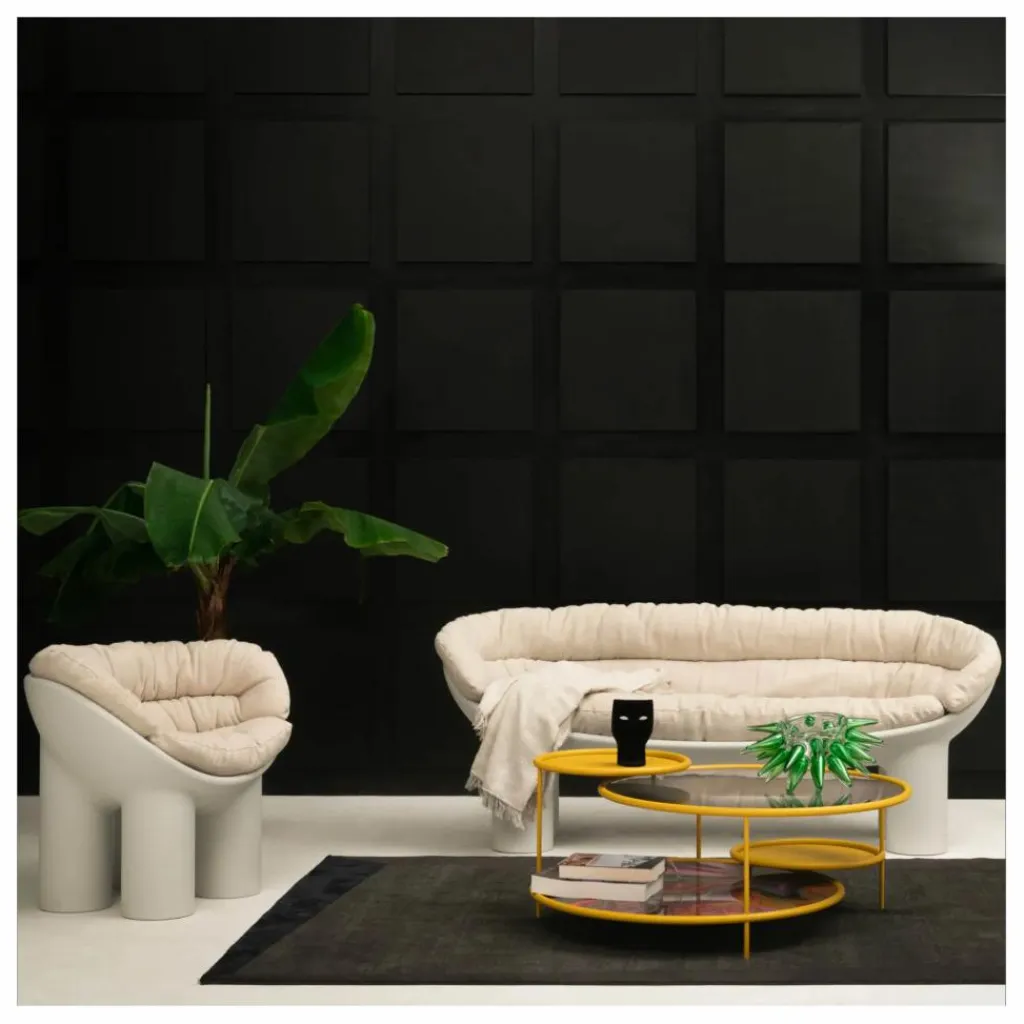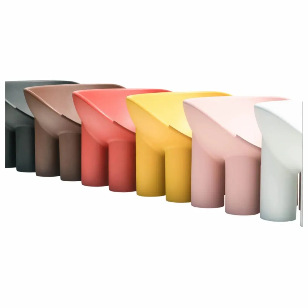 La collection Roly Poly incarne une rencontre entre la sculpture et le mobilier, représentant ainsi parfaitement la philosophie de la marque Driade. Le fauteuil se caractérise par la forme arrondie de son assise et ses pieds cylindriques. Ses formes lui confèrent un aspect rassurant et massif. Figure incontournable du design contemporain, Faye Toogood travaille autour de formes simples et massives en s’inspirant de l’art brut et du primitivisme.