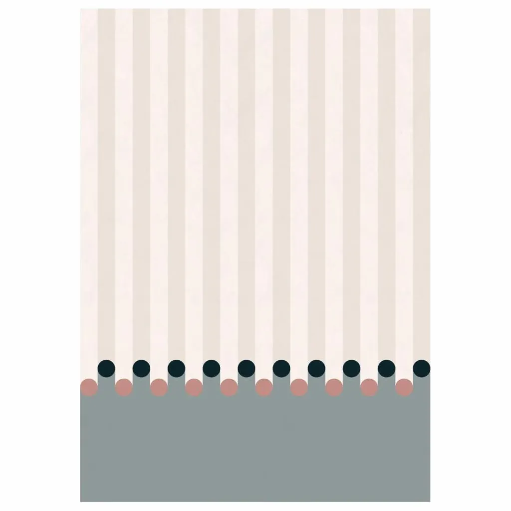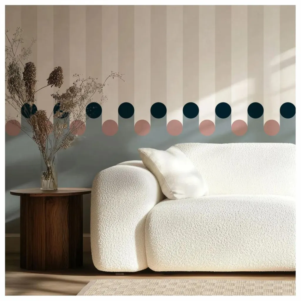 - Le papier peint Dott en bleu insuffle un élan de fraîcheur graphique à votre intérieur. Sa composition dynamique alterne cercles bleu nuit et rose poudré sur un fond de rayures verticales beige, le tout reposant sur une base gris bleuté apaisante. Ce mélange de formes et de contrastes crée un décor contemporain, plein de légèreté et de caractère.