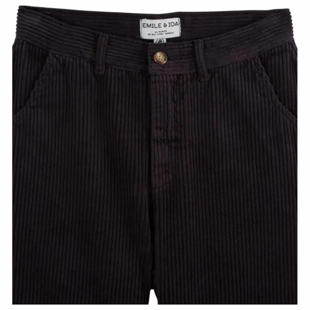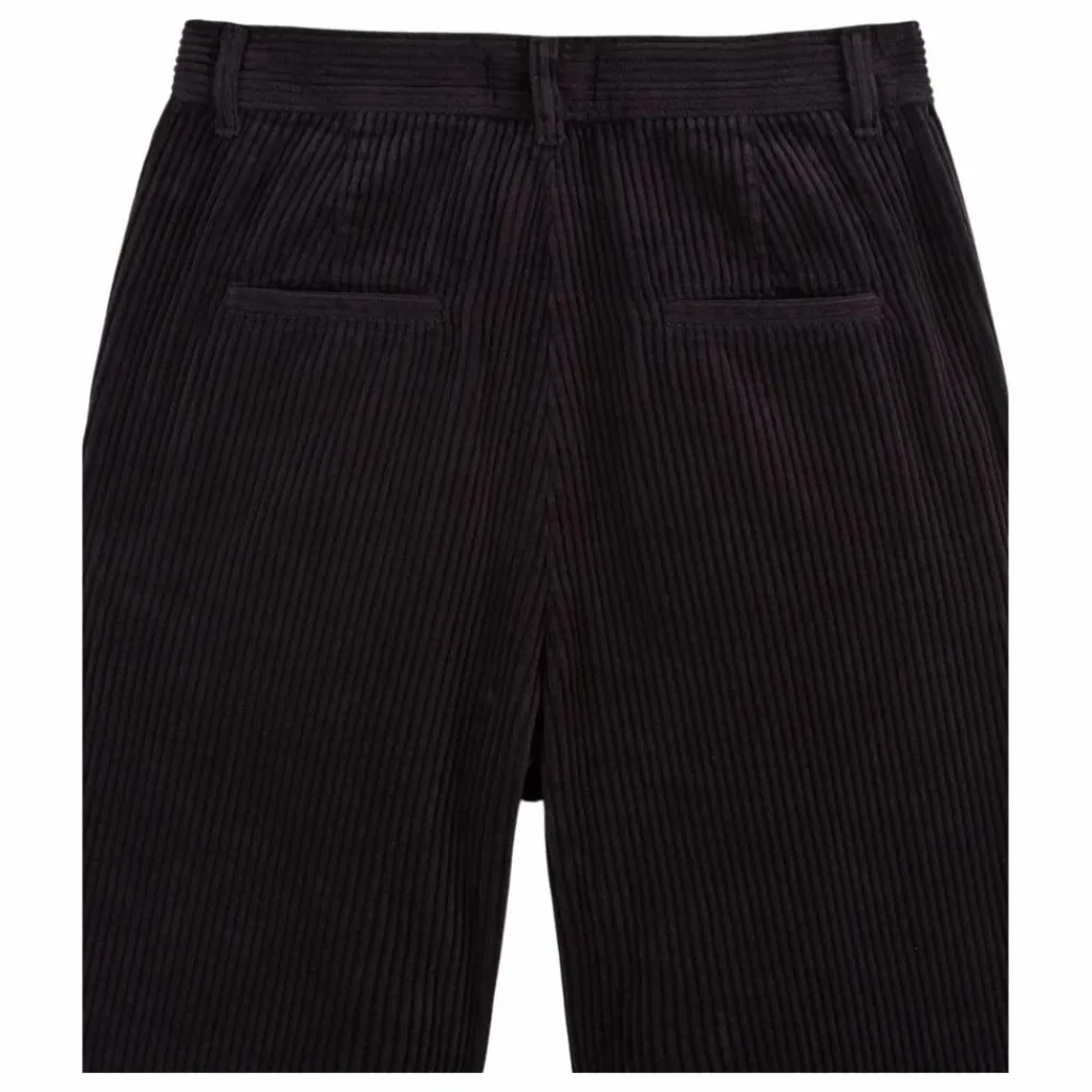 - Pantalon en velours de coton à grosses côtes rouge brique.