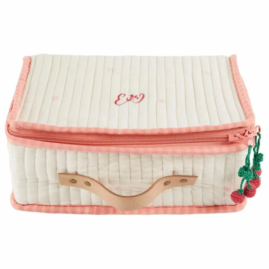 - Valisette en coton écru, délicatement parsemée de cœurs rose pastel. Parfaite pour ranger les petits trésors de votre enfant, elle accompagne promenades, soirées pyjama chez les copains ou escapades chez les grands-parents.