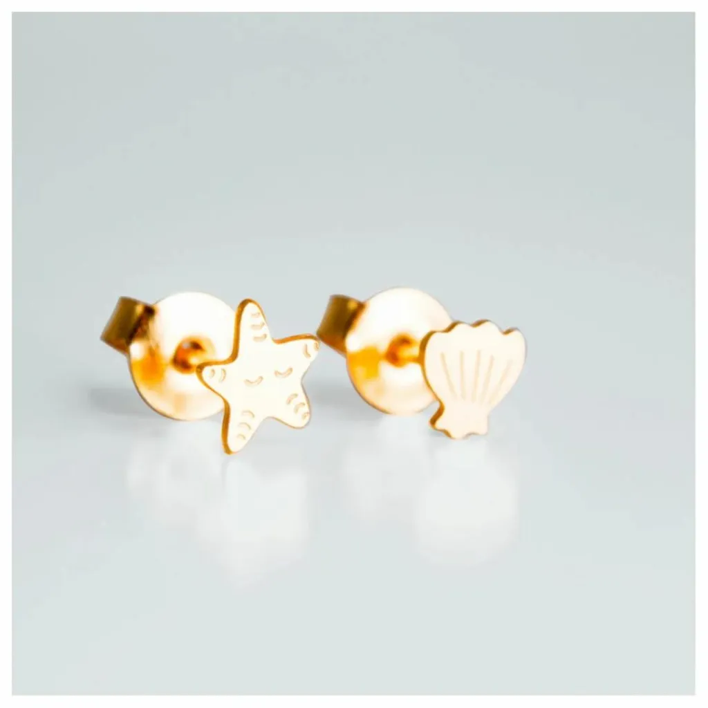 - Boucles d’oreilles en laiton doré à l’or fin 24 carats. Tiges en argent 925.
