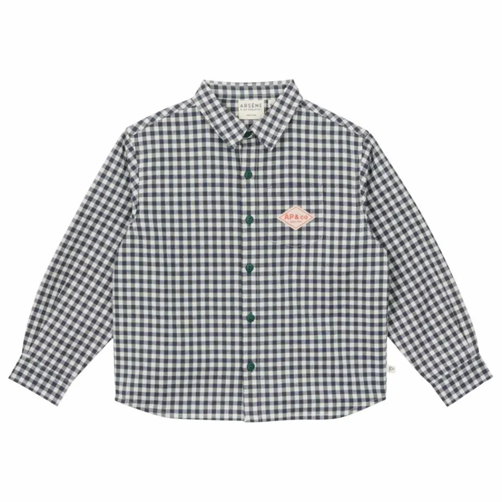 - Chemise vichy . – Manches longues avec poignets. – Col chemise. – Ouverture entierement boutonnee au milieu devant. – Poche poitrine avec etiquette « AP & CO ». – Bas de vetement arrondi. – etiquette petit drapeau cousue a la couture cote. – Produit certifie GOTS. – H25GC20