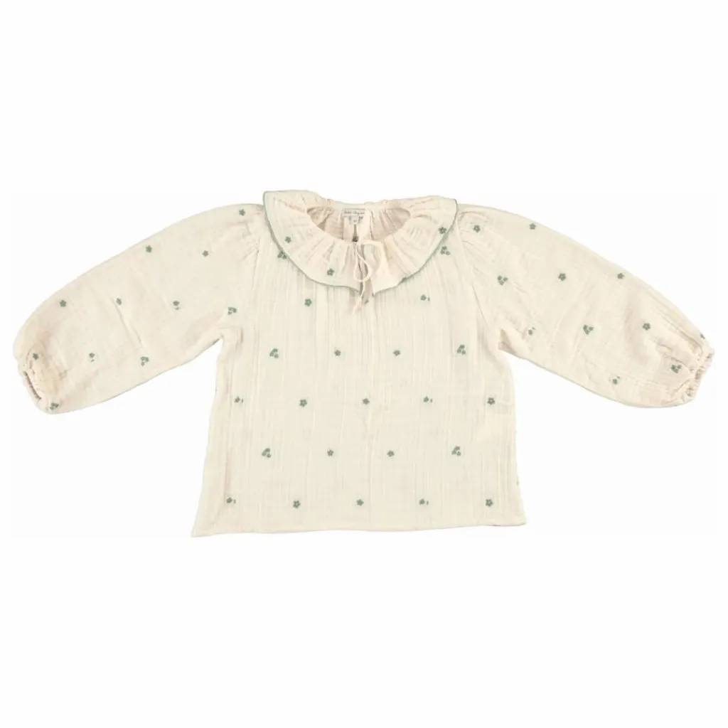 - La blouse Lilly, simple mais si douce, de couleur naturelle, est confectionnée dans une mousseline de coton biologique très légère et très douce. Elle est ornée d’une jolie broderie florale, d’un col à volants, d’une ouverture à nouer sur le devant et de longues manches bouffantes. Associez-la à une jupe Seraphina pour un look magnifique.