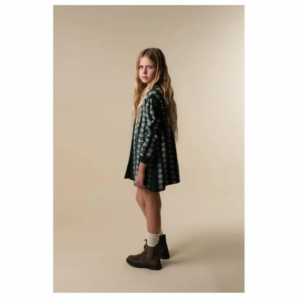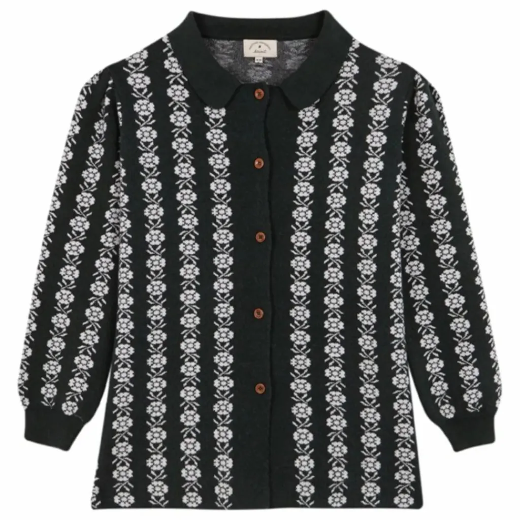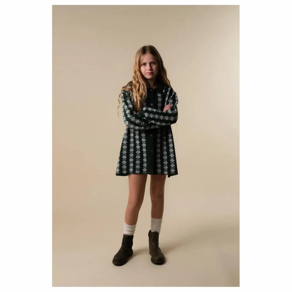 - Robe en maille jacquard florale avec patte de boutonnage sur le devant et col peter pan.