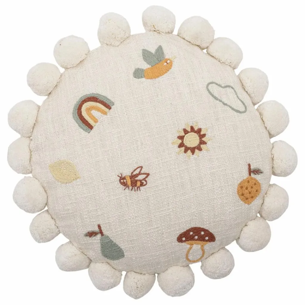 - Le coussin Agnes de Bloomingville MINI est l’ajout parfait à toute chambre d’enfant avec ses jolies figures délicatement brodées dans le design. Les pompons ronds et doux le long du bord ajoutent une ambiance chaleureuse, rendant le coussin à la fois décoratif et accueillant. Il est parfait pour des moments de détente, lorsque les enfants ont besoin de se reposer après une longue journée, ou de se détendre avec un oreiller et un bon livre.