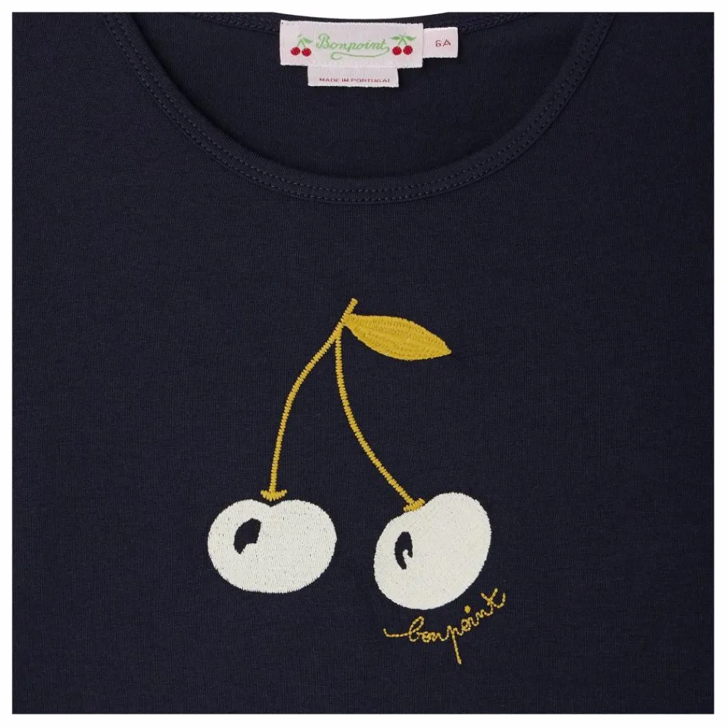 - Le t-shirt Tidjiane pour fille est un indispensable au quotidien. Orné d’une broderie cerise colorée sur la poitrine, ce modèle à manches longues est confectionné en coton biologique.En coton biologiqueCoupe droiteCol rondManches longues