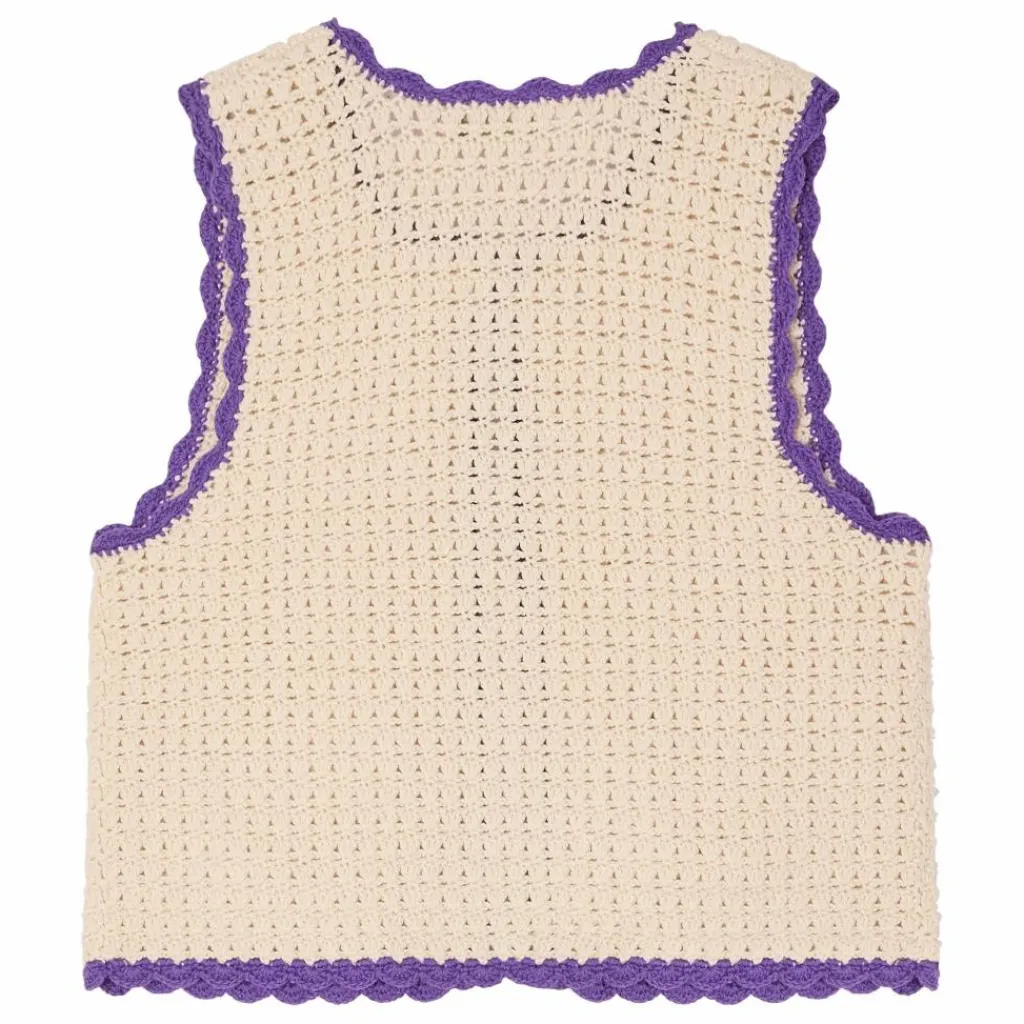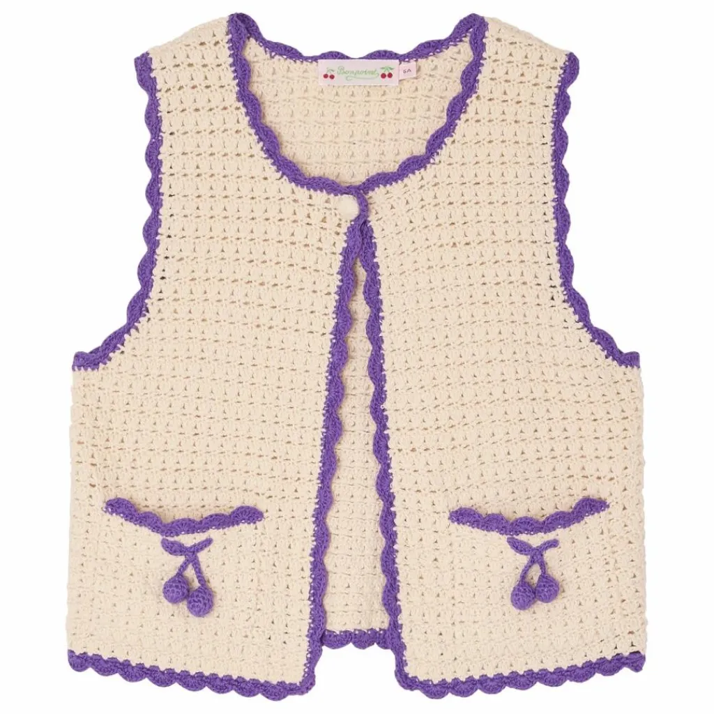 - Ce cardigan au crochet pour fille Laila est ravissant avec ses bords festonnés contrastants. Ses deux poches sont ornées de cerises Bonpoint sous forme de pampilles.