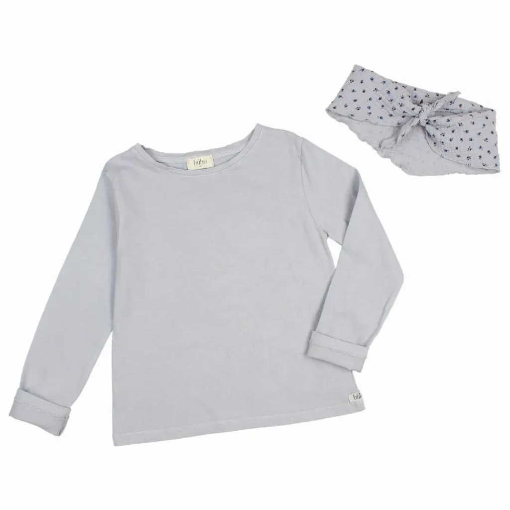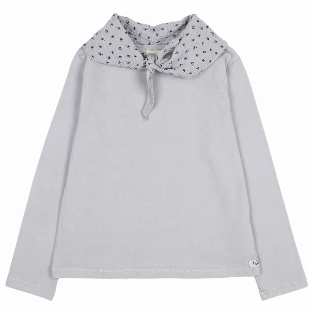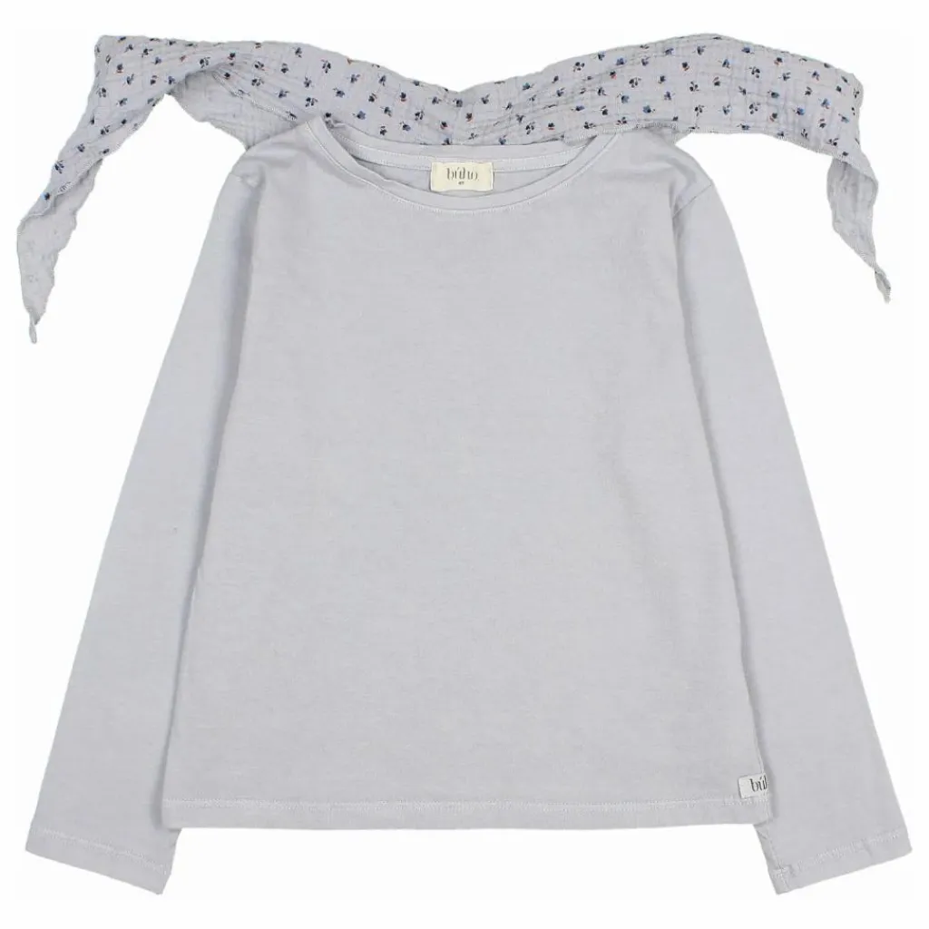 - T-shirt à manches longues avec écharpe en mousseline imprimée « fall ». Col rond. Foulard fermé par un bouton au dos.