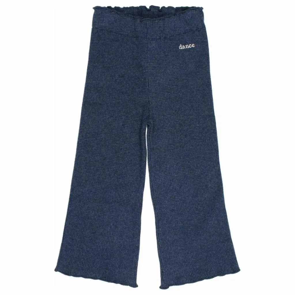 - Pantalon large en tricot gaufré. Taille élastique avec cordon de serrage intérieur en coton. Motif de danse brodé sous la ceinture.