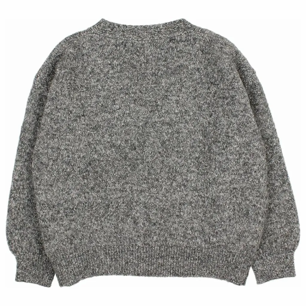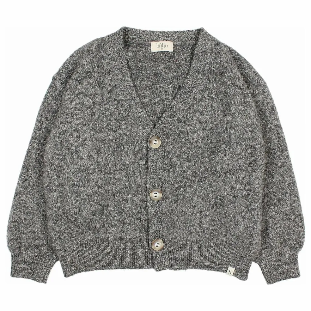 - Cardigan en maille mélangée. Fermeture par bouton sur le devant. Encolure en V. Poignets et ourlet côtelés. Étiquette sur l’ourlet.