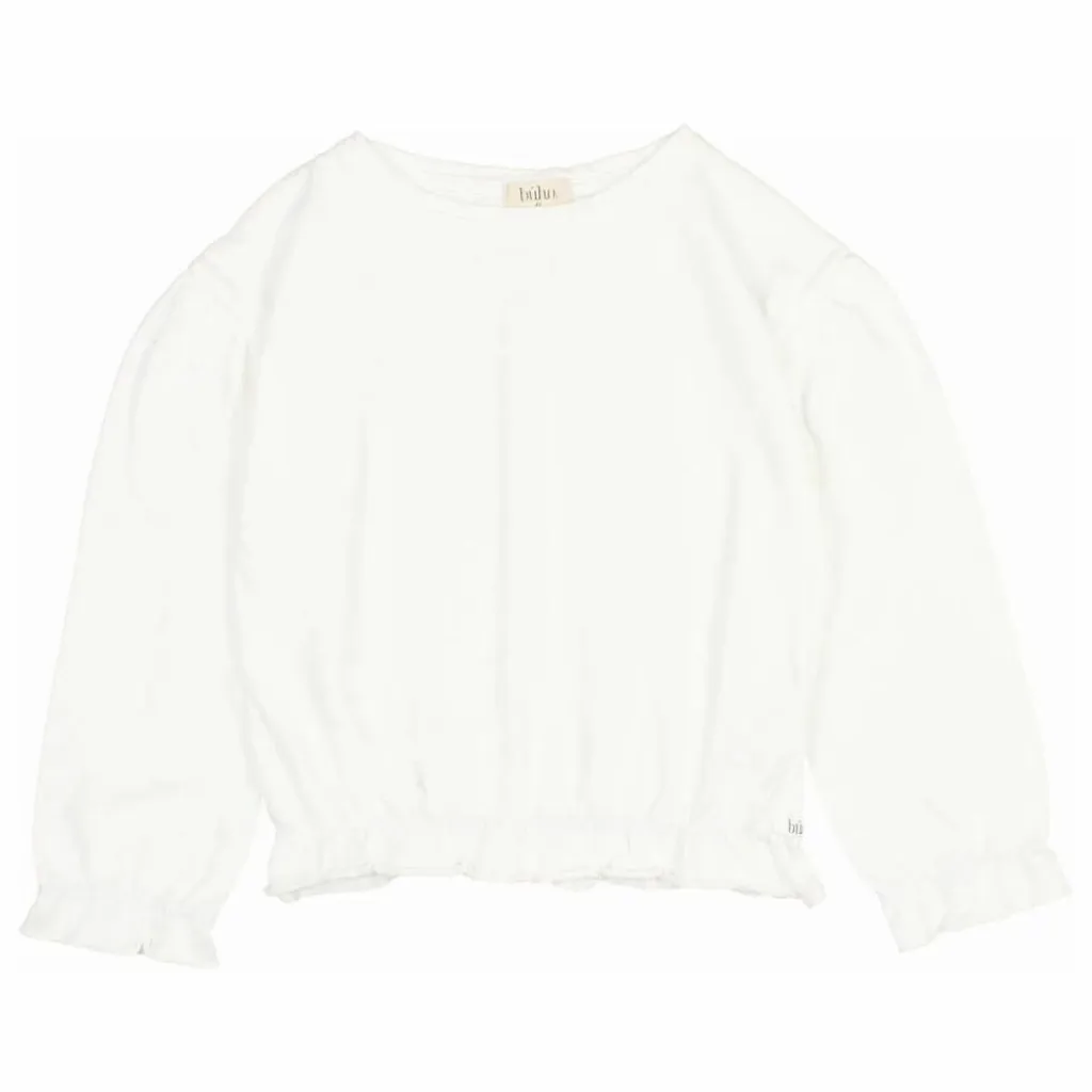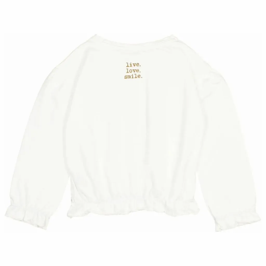 - T-shirt à manches longues bouffantes. Volants à l’ourlet et aux poignets. Motif imprimé sur le haut du dos. Col rond.