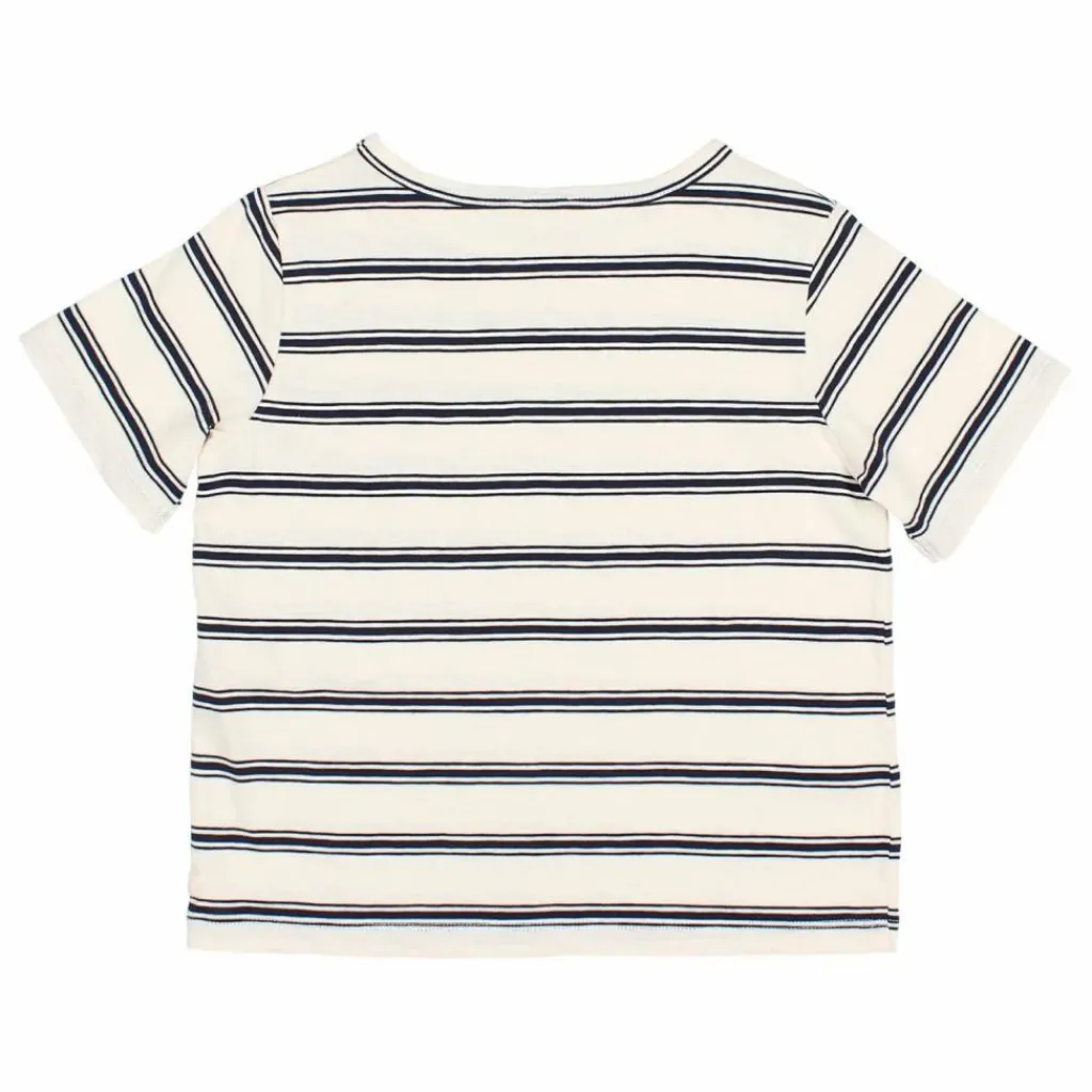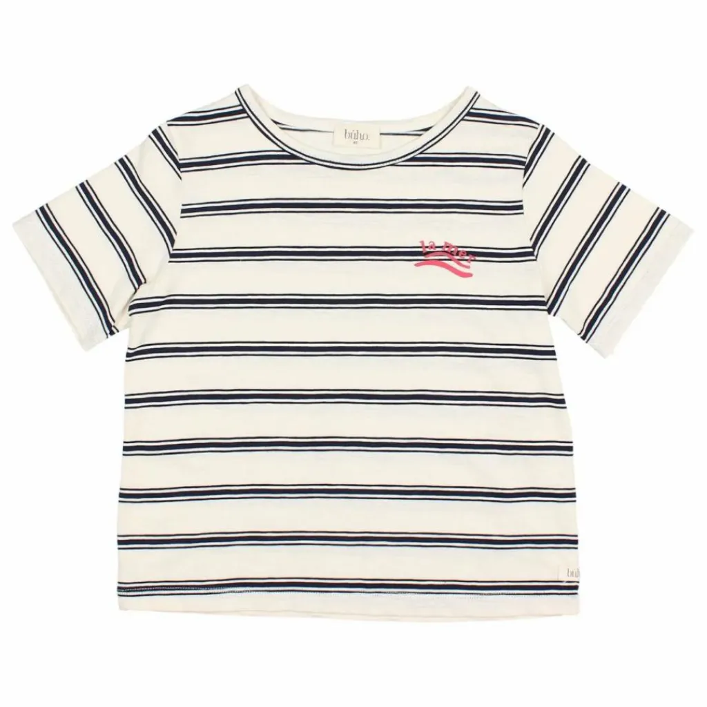 - T-shirt rayé avec impression de la poitrine sur le devant. Col rond. Manches courtes.