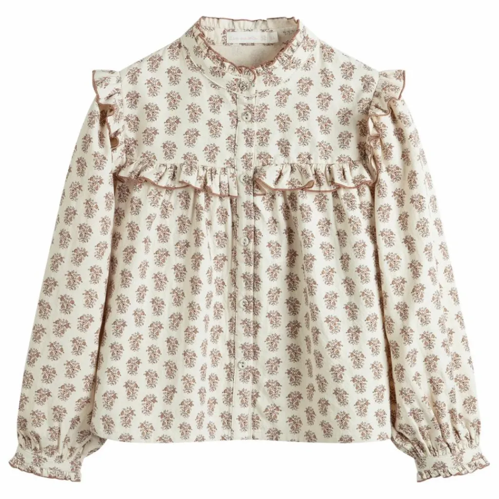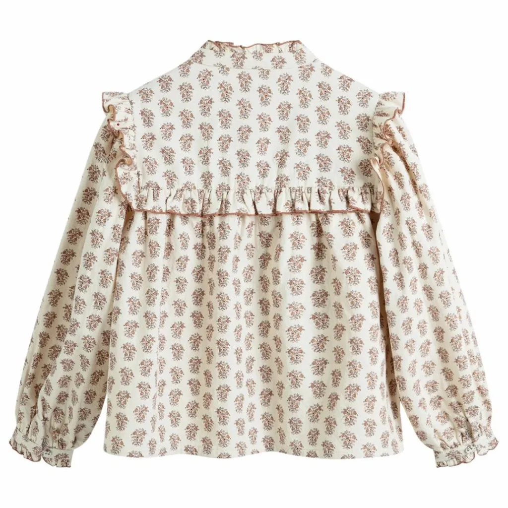 - Chemise en coton imprimé avec col à volants sur tout le pourtour