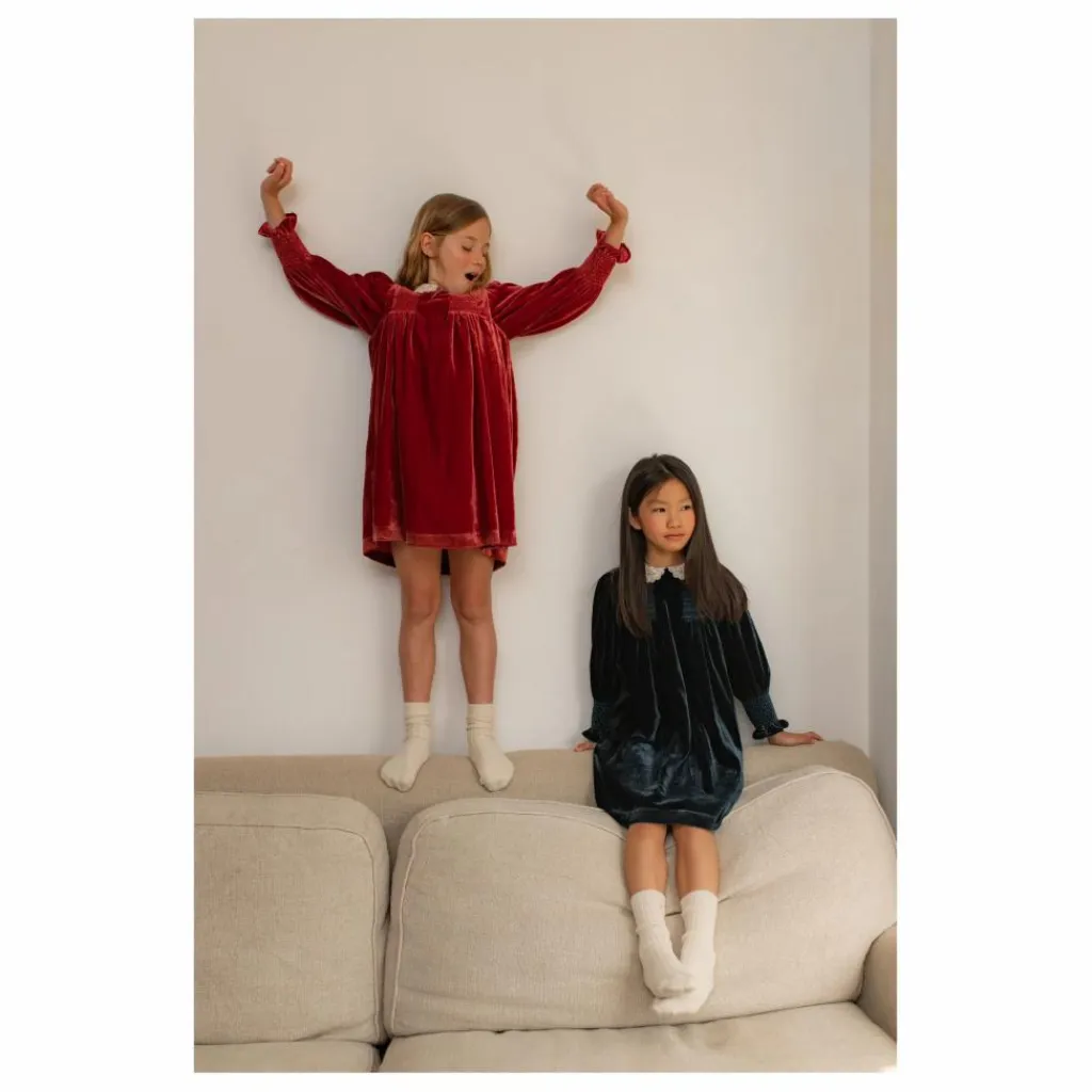 - Robe à manches longues en velours avec épaules smockées. Doublure en coton