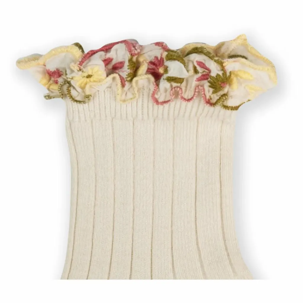 - Bon maintien, Chaussettes montantes, Froufrous, Chaud et confortable, Côtelé