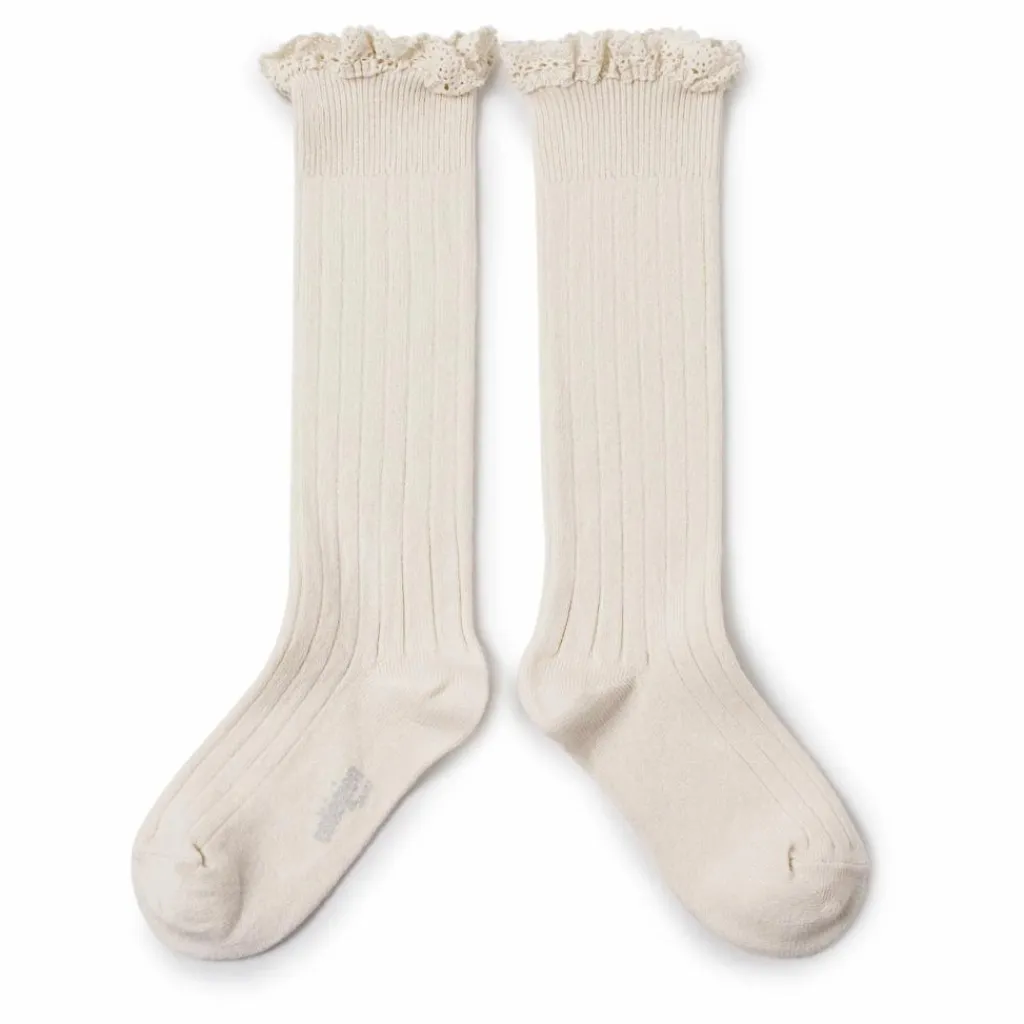 - Bords en dentelle, Chaussettes montantes, Agréable à porter, Côtelé, Logo contrasté, Confortable