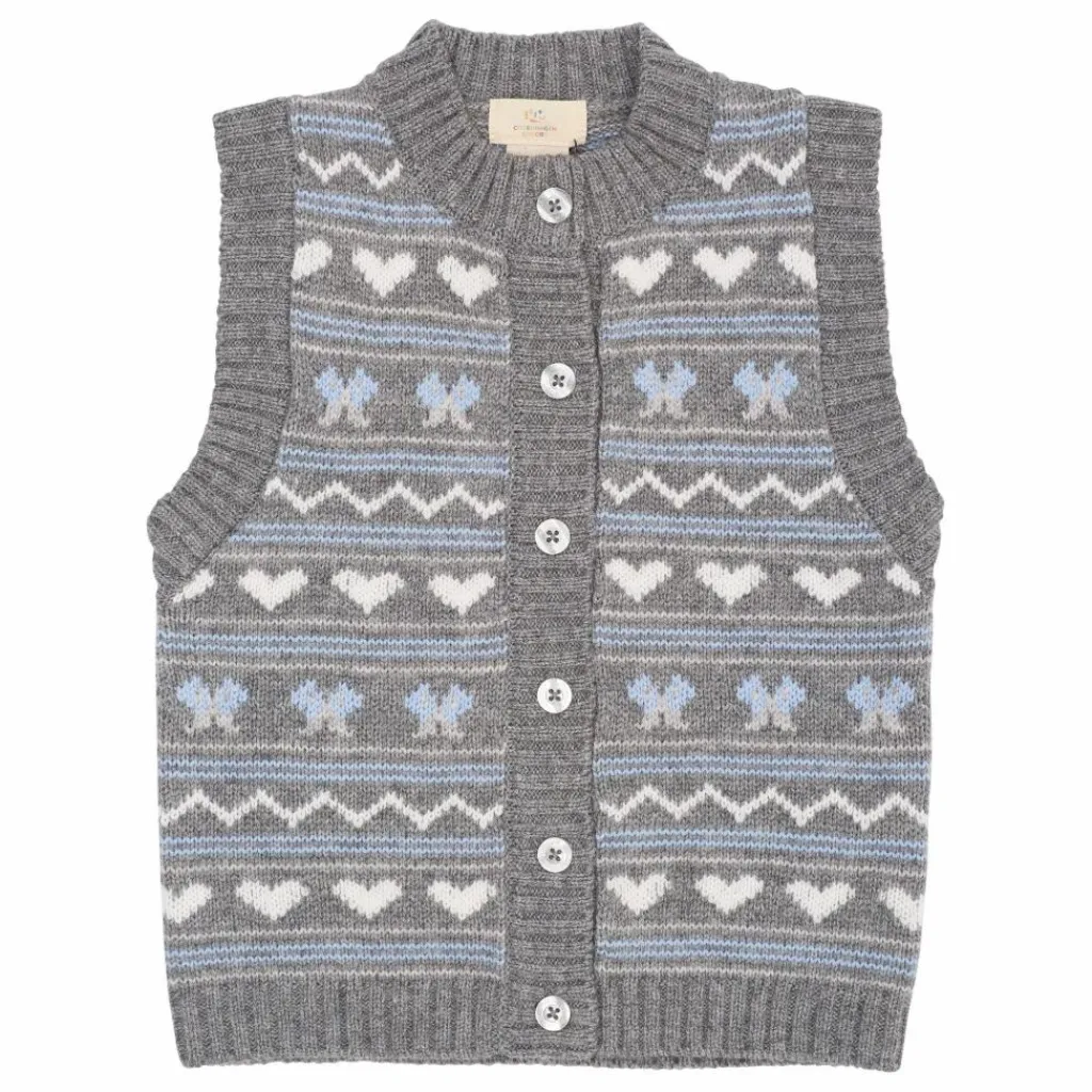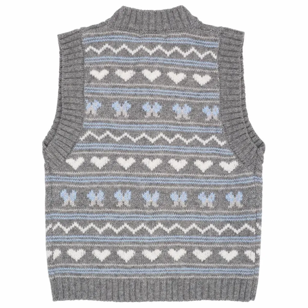 - Ce gilet en cachemire est doté d’un col rond et d’un motif tricoté sur l’ensemble du corps. Le gilet est idéal pour les superpositions.